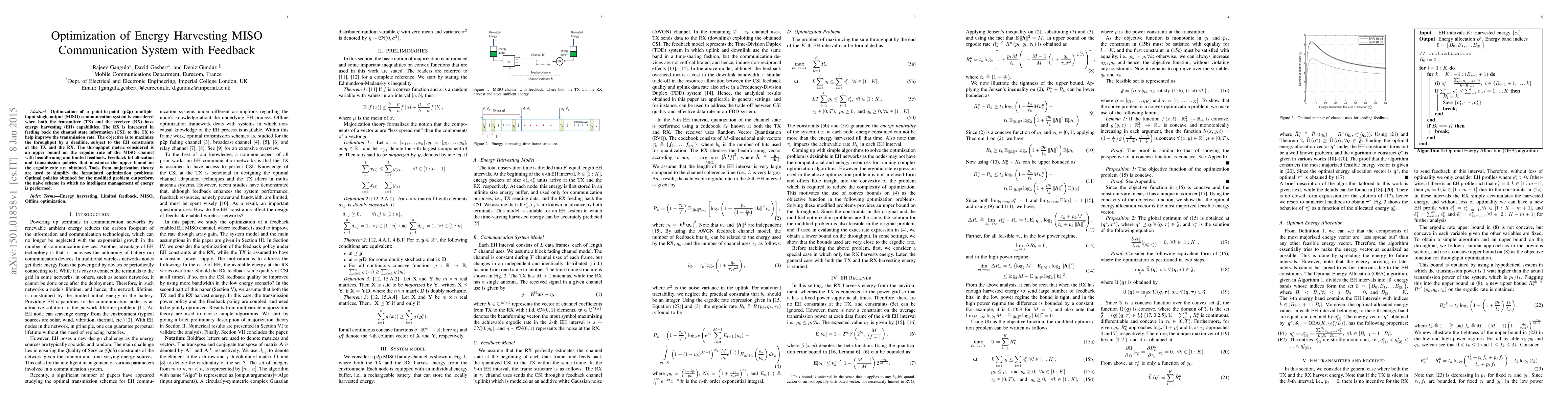 This paper optimizes a MISO communication system where both transmitter and receiver have energy harvesting capabilities, aiming to maximize throughput by a deadline under energy harvesting constraints. The receiver feeds back channel state information to the transmitter, and optimal feedback bit allocation and transmission policies are derived to enhance the ergodic rate.