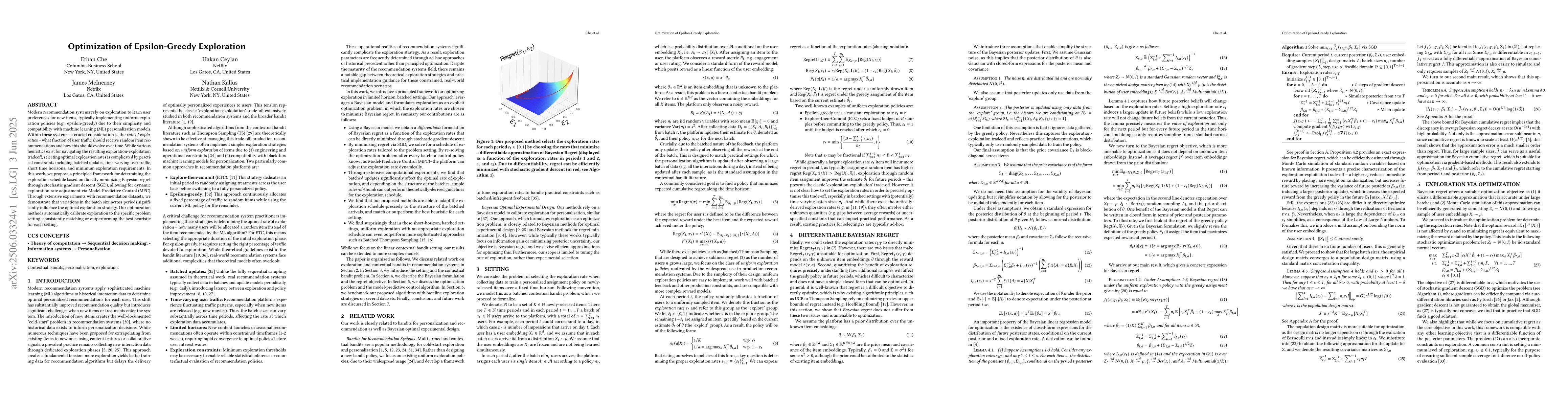 This work stands out by directly optimizing exploration rates instead of relying on heuristics, offering a more adaptive and problem-specific approach to the exploration-exploitation dilemma in recommendation systems.