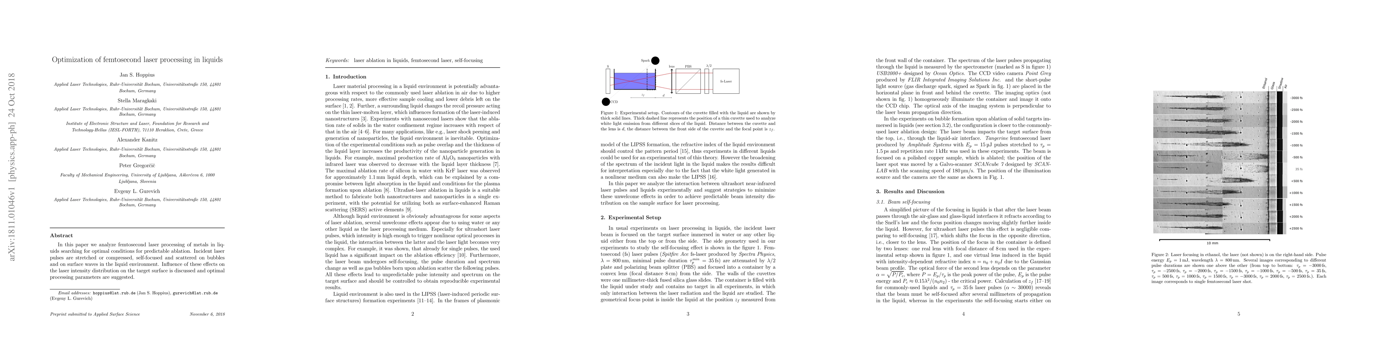 Researchers analyzed femtosecond laser processing of metals in liquids to find optimal conditions for predictable ablation, focusing on how stretching/compression affects the laser intensity distribution.