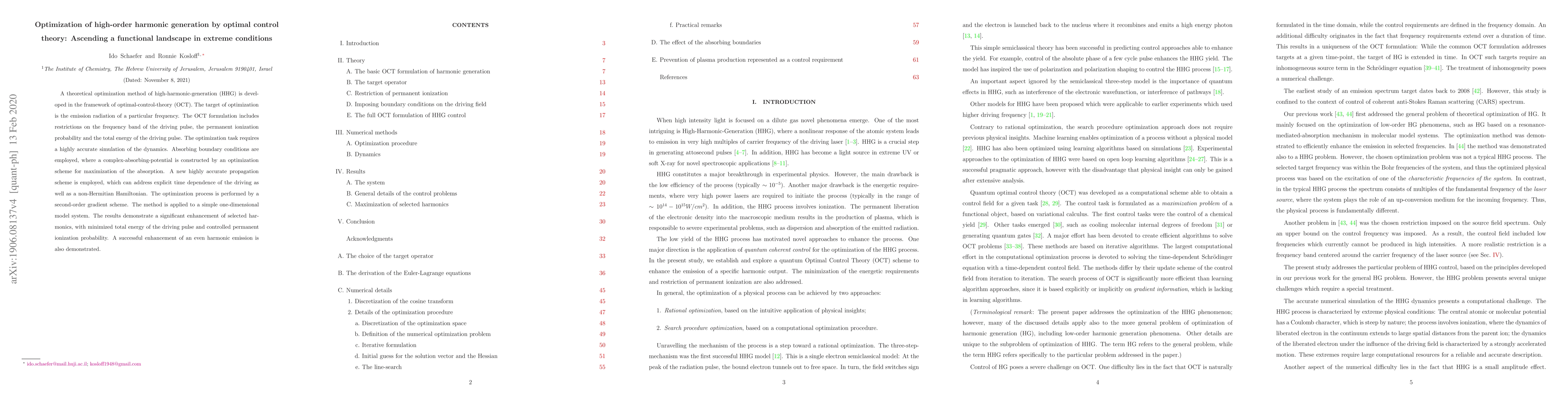 This paper develops a theoretical optimization method using optimal control theory to enhance high-order harmonic generation, focusing on specific frequency emissions while minimizing driving pulse energy and controlling ionization. The method employs a new propagation scheme and gradient optimization, showing significant improvements in harmonic emissions in a one-dimensional model.