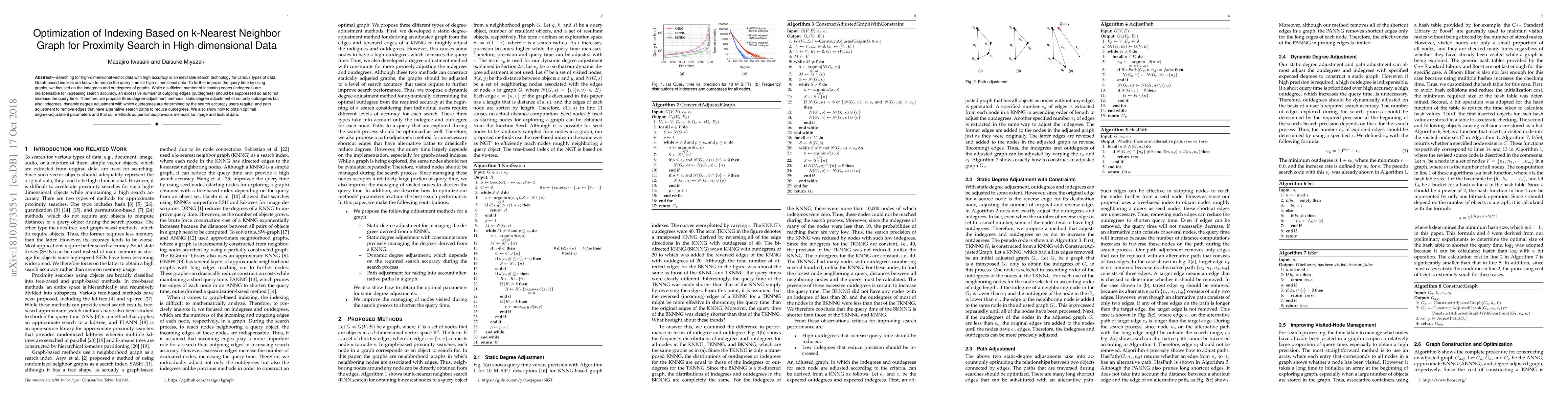 Searching for high-dimensional vector data with high accuracy is an inevitable search technology for various types of data. Graph-based indexes are known to reduce the query time for high-dimensional data. To further improve the query time by using graphs, we focused on the indegrees and outdegrees of graphs. While a sufficient number of incoming edges (indegrees) are indispensable for increasing search accuracy, an excessive number of outgoing edges (outdegrees) should be suppressed so as to not increase the query time. Therefore, we propose three degree-adjustment methods: static degree adjustment of not only outdegrees but also indegrees, dynamic degree adjustment with which outdegrees are determined by the search accuracy users require, and path adjustment to remove edges that have alternative search paths to reduce outdegrees. We also show how to obtain optimal degree-adjustment parameters and that our methods outperformed previous methods for image and textual data.