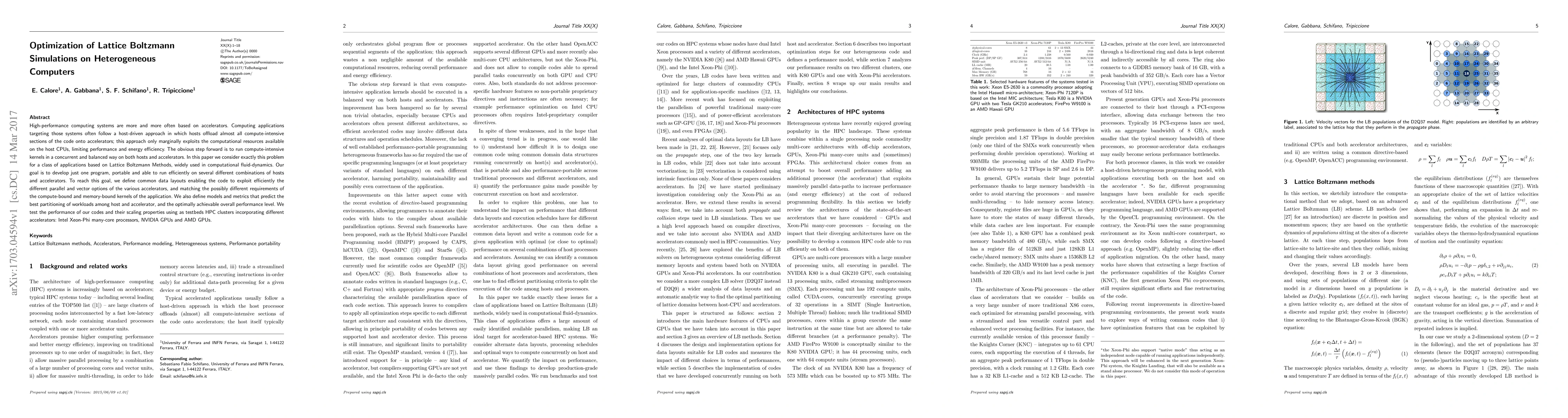 High-performance computing systems are more and more often based on accelerators. Computing applications targeting those systems often follow a host-driven approach in which hosts offload almost all compute-intensive sections of the code onto accelerators; this approach only marginally exploits the computational resources available on the host CPUs, limiting performance and energy efficiency. The obvious step forward is to run compute-intensive kernels in a concurrent and balanced way on both hosts and accelerators. In this paper we consider exactly this problem for a class of applications based on Lattice Boltzmann Methods, widely used in computational fluid-dynamics. Our goal is to develop just one program, portable and able to run efficiently on several different combinations of hosts and accelerators. To reach this goal, we define common data layouts enabling the code to exploit efficiently the different parallel and vector options of the various accelerators, and matching the possibly different requirements of the compute-bound and memory-bound kernels of the application. We also define models and metrics that predict the best partitioning of workloads among host and accelerator, and the optimally achievable overall performance level. We test the performance of our codes and their scaling properties using as testbeds HPC clusters incorporating different accelerators: Intel Xeon-Phi many-core processors, NVIDIA GPUs and AMD GPUs.