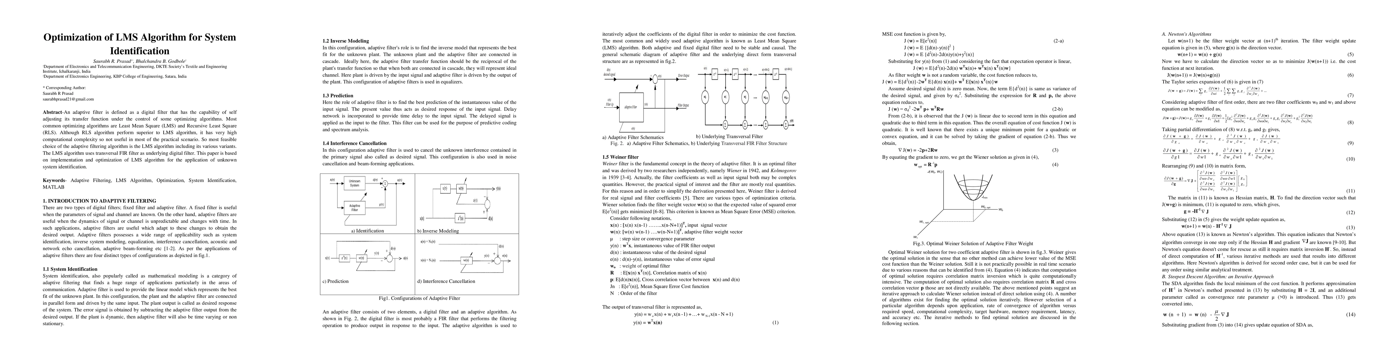 This paper explores the optimization of the Least Mean Square (LMS) algorithm for system identification, focusing on its practical application due to the high computational complexity of the Recursive Least Square (RLS) algorithm. The study aims to enhance the performance of the LMS algorithm for adaptive filtering tasks.