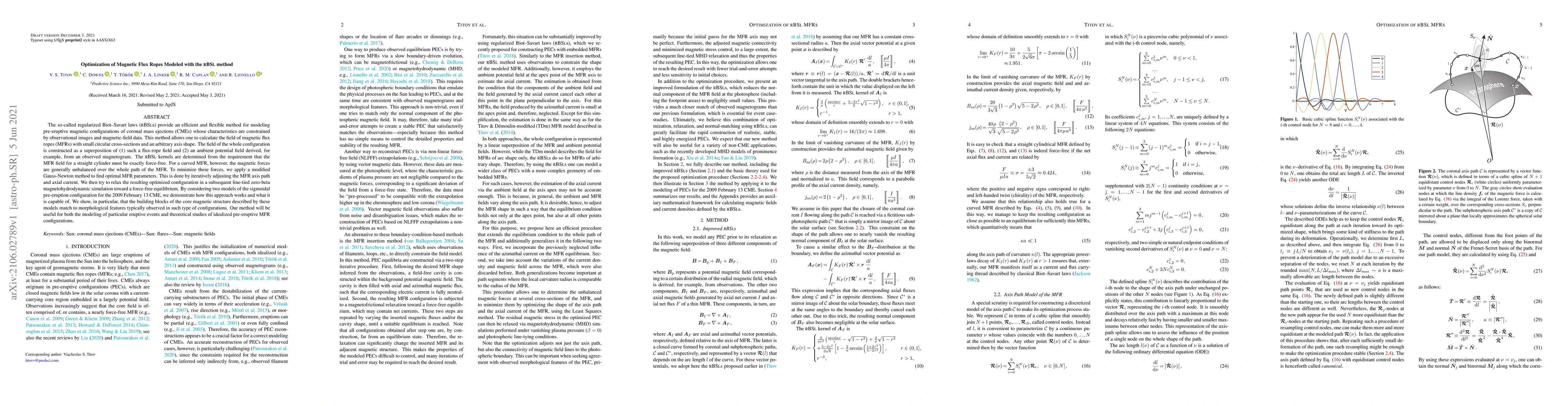 The so-called regularized Biot-Savart laws (RBSLs) provide an efficient and flexible method for modeling pre-eruptive magnetic configurations of coronal mass ejections (CMEs) whose characteristics are constrained by observational images and magnetic-field data. This method allows one to calculate the field of magnetic flux ropes (MFRs) with small circular cross-sections and an arbitrary axis shape. The field of the whole configuration is constructed as a superposition of (1) such a flux-rope field and (2) an ambient potential field derived, for example, from an observed magnetogram. The RBSL kernels are determined from the requirement that the MFR field for a straight cylinder must be exactly force-free. For a curved MFR, however, the magnetic forces are generally unbalanced over the whole path of the MFR. To minimize these forces, we apply a modified Gauss-Newton method to find optimal MFR parameters. This is done by iteratively adjusting the MFR axis path and axial current. We then try to relax the resulting optimized configuration in a subsequent line-tied zero-beta magnetohydrodynamic simulation toward a force-free equilibrium. By considering two models of the sigmoidal pre-eruption configuration for the 2009 February 13 CME, we demonstrate how this approach works and what it is capable of. We show, in particular, that the building blocks of the core magnetic structure described by these models match to morphological features typically observed in such type of configurations. Our method will be useful for both the modeling of particular eruptive events and theoretical studies of idealized pre-eruptive MFR configurations.