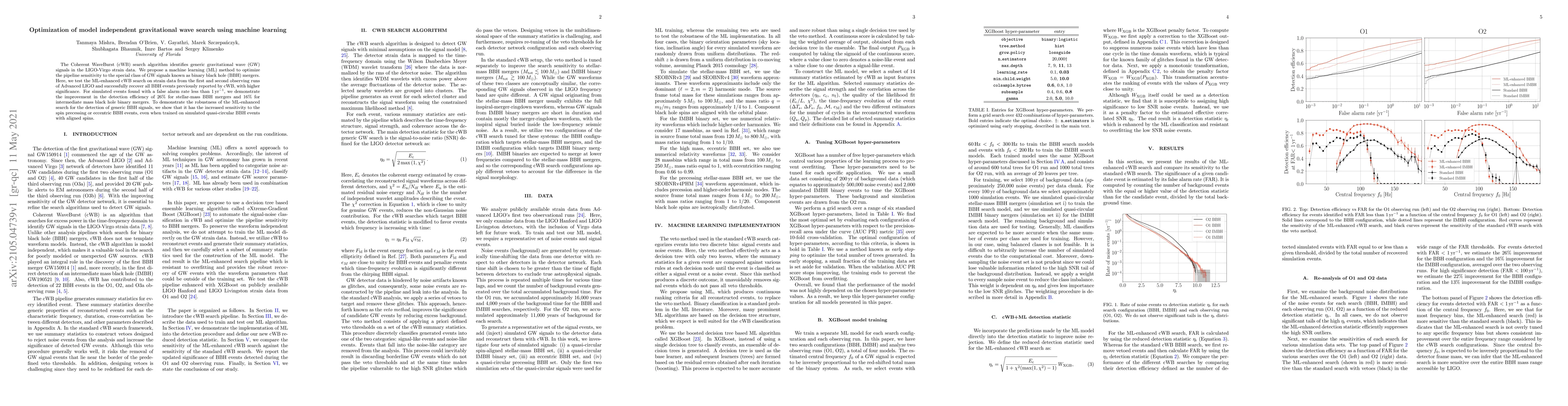 The Coherent WaveBurst (cWB) search algorithm identifies generic gravitational wave (GW) signals in the LIGO-Virgo strain data. We propose a machine learning (ML) method to optimize the pipeline sensitivity to the special class of GW signals known as binary black hole (BBH) mergers. Here, we test the ML-enhanced cWB search on strain data from the first and second observing runs of Advanced LIGO and successfully recover all BBH events previously reported by cWB, with higher significance. For simulated events found with a false alarm rate less than $1\,\mathrm{yr}^{-1}$, we demonstrate the improvement in the detection efficiency of 26% for stellar-mass BBH mergers and 16% for intermediate mass black hole binary mergers. To demonstrate the robustness of the ML-enhanced search for the detection of generic BBH signals, we show that it has the increased sensitivity to the spin precessing or eccentric BBH events, even when trained on simulated quasi-circular BBH events with aligned spins.