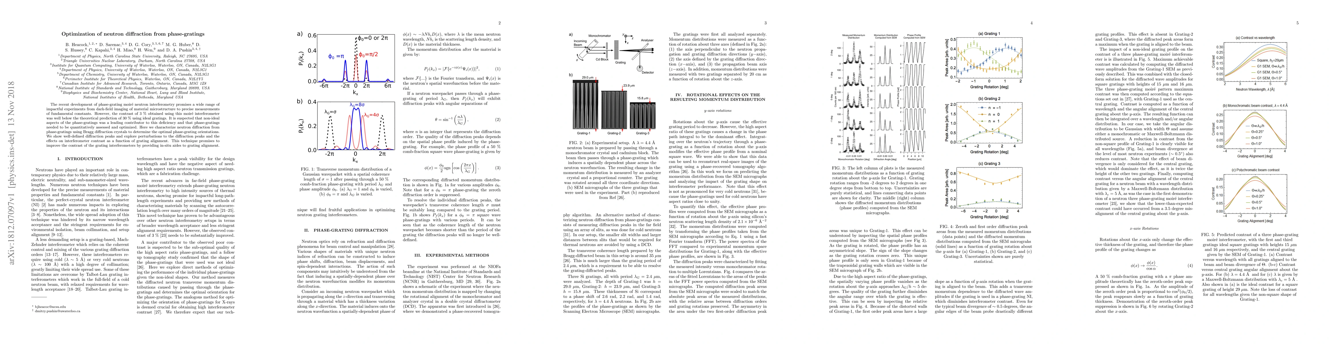 This paper investigates the optimization of neutron diffraction from phase-gratings to enhance the contrast of moiré neutron interferometry, aiming to bridge the gap between theoretical predictions and experimental results. The study uses Bragg diffraction crystals to determine optimal grating orientations, demonstrating improved alignment techniques that could significantly boost interferometer contrast.