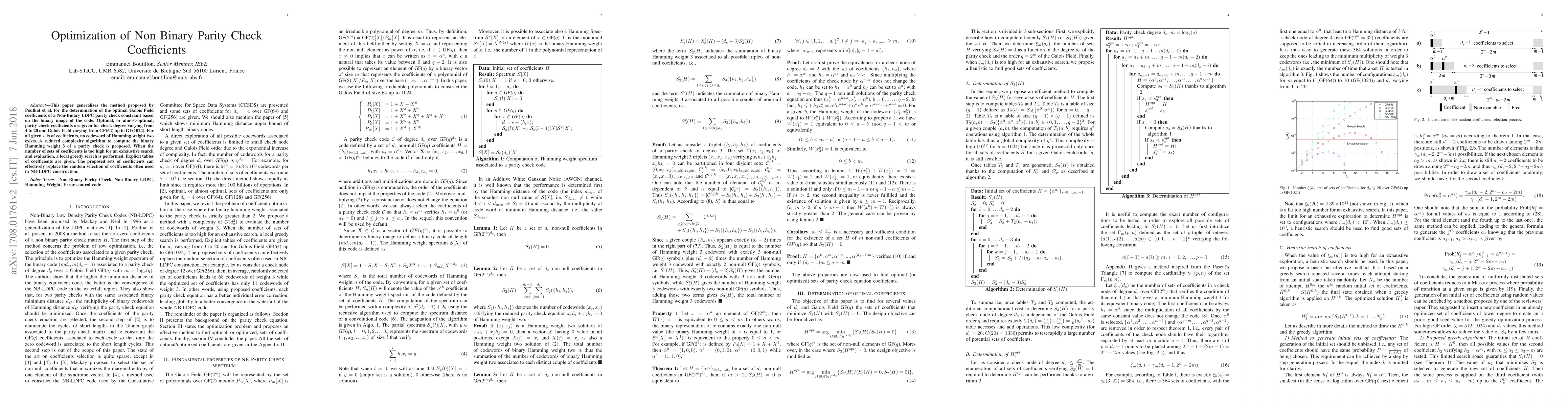 Researchers optimized non-binary parity check coefficients for Low-Density Parity-Check codes, finding effective sets of coefficients that can replace random selection in construction.