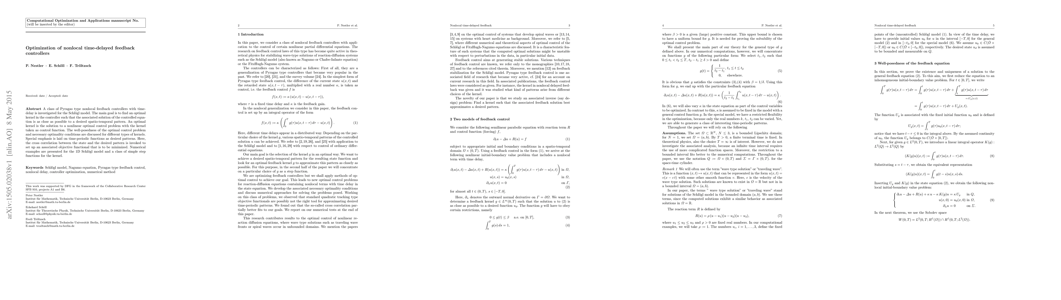 Researchers optimize nonlocal time-delayed feedback controllers to create patterns in the Schlögl model by minimizing cross-correlation between states and desired patterns, improving pattern formation.