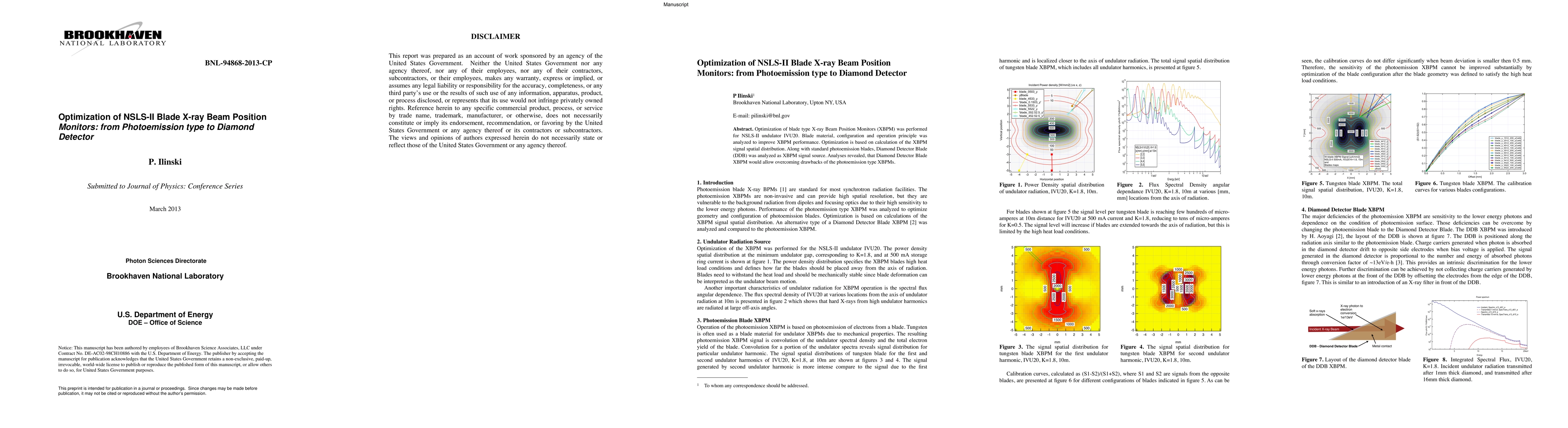 The paper optimizes X-ray Beam Position Monitors (XBPM) for NSLS-II undulator IVU20 by transitioning from photoemission blades to Diamond Detector Blades (DDB). The analysis shows that DDBs can overcome the limitations of traditional photoemission blades, enhancing XBPM performance.