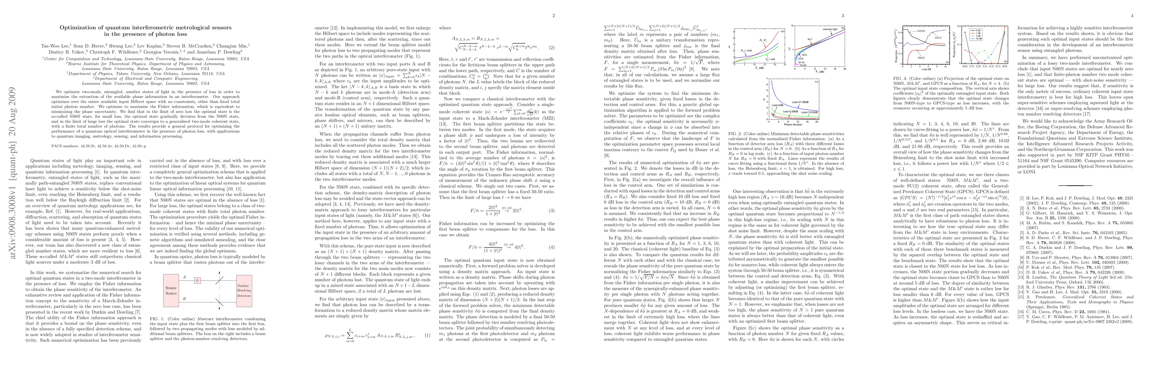 This paper optimizes entangled quantum states to maximize phase information extraction in interferometers despite photon loss, finding that the optimal state varies from N00N states to generalized coherent states depending on the loss level. The results offer a protocol for enhancing quantum interferometric sensor performance in various applications.