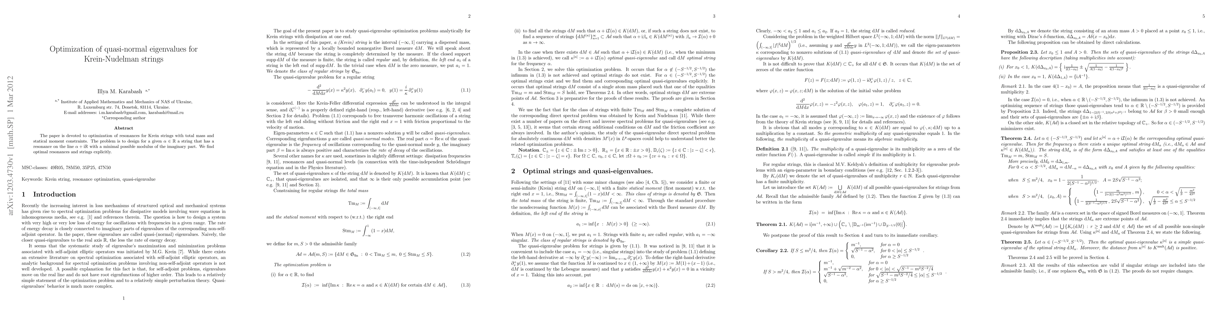 The paper is devoted to optimization of resonances for Krein strings with total mass and statical moment constraints. The problem is to design for a given $\alpha \in \R$ a string that has a resonance on the line $\alpha + \i \R$ with a minimal possible modulus of the imaginary part. We find optimal resonances and strings explicitly.
