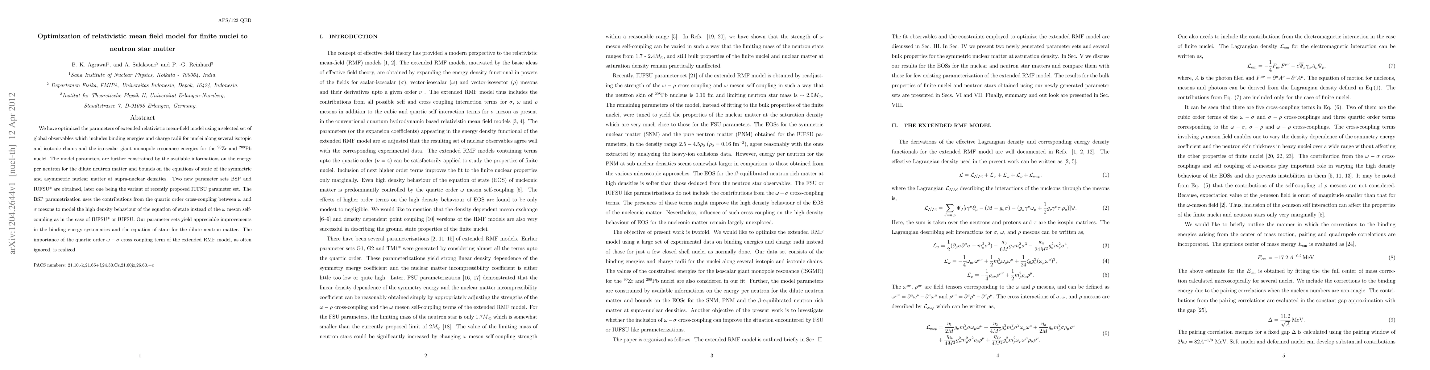 We have optimized the parameters of extended relativistic mean-field model using a selected set of global observables which includes binding energies and charge radii for nuclei along several isotopic and isotonic chains and the iso-scalar giant monopole resonance energies for the $^{90}$Zr and $^{208}$Pb nuclei. The model parameters are further constrained by the available informations on the energy per neutron for the dilute neutron matter and bounds on the equations of state of the symmetric and asymmetric nuclear matter at supra-nuclear densities. Two new parameter sets BSP and IUFSU* are obtained, later one being the variant of recently proposed IUFSU parameter set. The BSP parametrization uses the contributions from the quartic order cross-coupling between $\omega$ and $\sigma$ mesons to model the high density behaviour of the equation of state instead of the $\omega$ meson self-coupling as in the case of IUFSU* or IUFSU. Our parameter sets yield appreciable improvements in the binding energy systematics and the equation of state for the dilute neutron matter. The importance of the quartic order $\omega-\sigma$ cross coupling term of the extended RMF model, as often ignored, is realized.