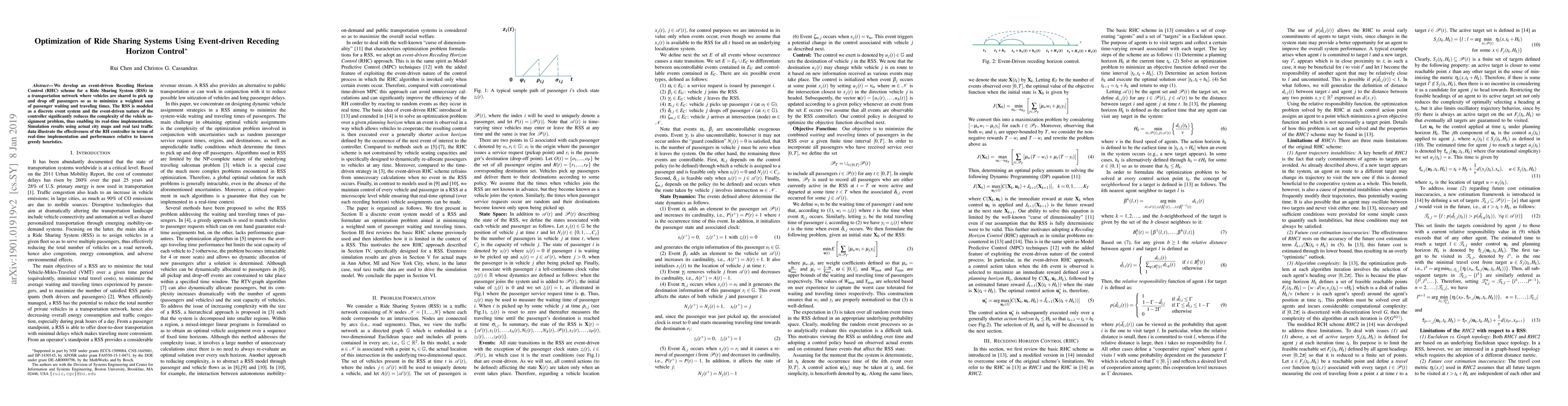 This paper proposes an event-driven Receding Horizon Control scheme to optimize ride-sharing systems, minimizing passenger waiting and traveling times. The discrete event system model and event-driven controller reduce complexity, enabling real-time implementation and outperforming known heuristics in simulations.
