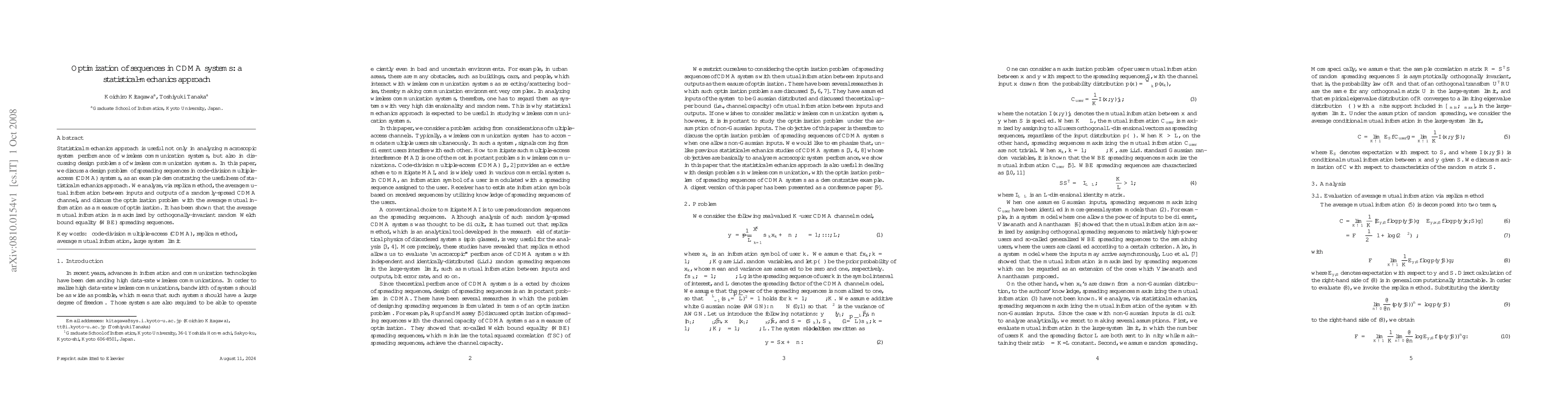 This paper employs a statistical mechanics approach to optimize spreading sequences in CDMA systems, demonstrating its utility through the replica method. It shows that the average mutual information, used as a measure of optimization, is maximized by orthogonally-invariant random Welch bound equality (WBE) spreading sequences.