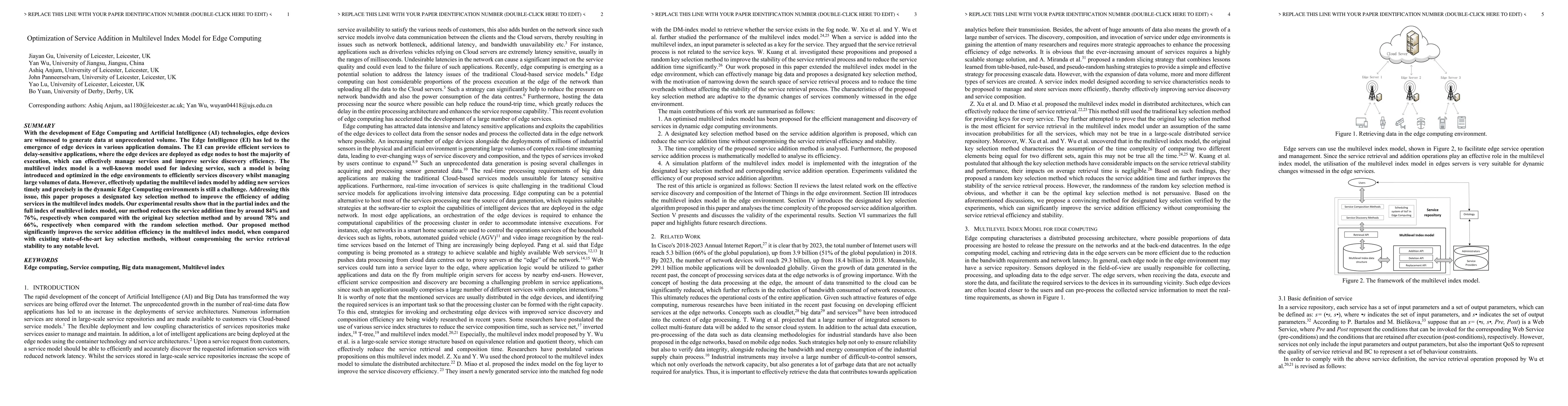 With the development of Edge Computing and Artificial Intelligence (AI) technologies, edge devices are witnessed to generate data at unprecedented volume. The Edge Intelligence (EI) has led to the emergence of edge devices in various application domains. The EI can provide efficient services to delay-sensitive applications, where the edge devices are deployed as edge nodes to host the majority of execution, which can effectively manage services and improve service discovery efficiency. The multilevel index model is a well-known model used for indexing service, such a model is being introduced and optimized in the edge environments to efficiently services discovery whilst managing large volumes of data. However, effectively updating the multilevel index model by adding new services timely and precisely in the dynamic Edge Computing environments is still a challenge. Addressing this issue, this paper proposes a designated key selection method to improve the efficiency of adding services in the multilevel index models. Our experimental results show that in the partial index and the full index of multilevel index model, our method reduces the service addition time by around 84% and 76%, respectively when compared with the original key selection method and by around 78% and 66%, respectively when compared with the random selection method. Our proposed method significantly improves the service addition efficiency in the multilevel index model, when compared with existing state-of-the-art key selection methods, without compromising the service retrieval stability to any notable level.