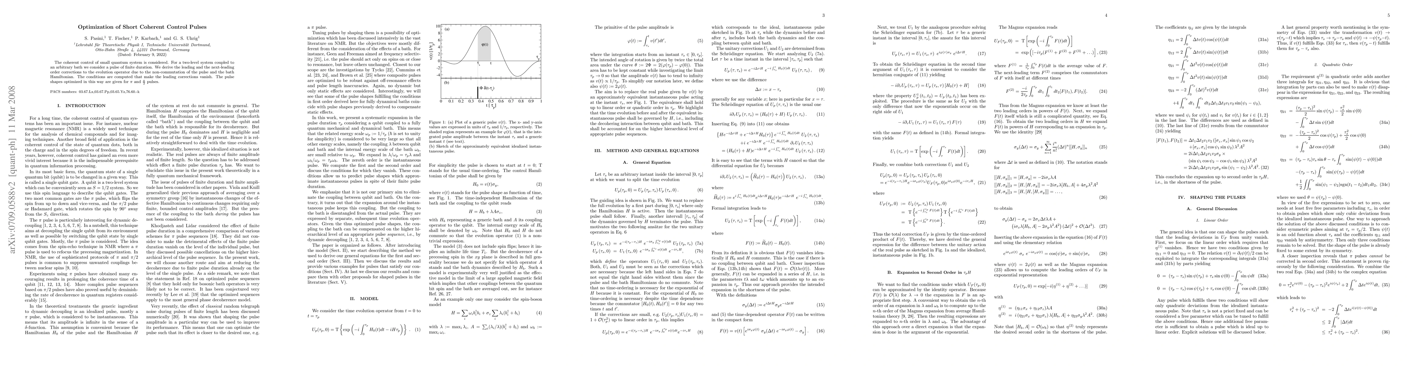 The paper presents a detailed mathematical framework for optimizing short coherent control pulses by considering higher-order corrections in the pulse duration, contributing to the theoretical understanding of quantum control in the presence of environmental noise.