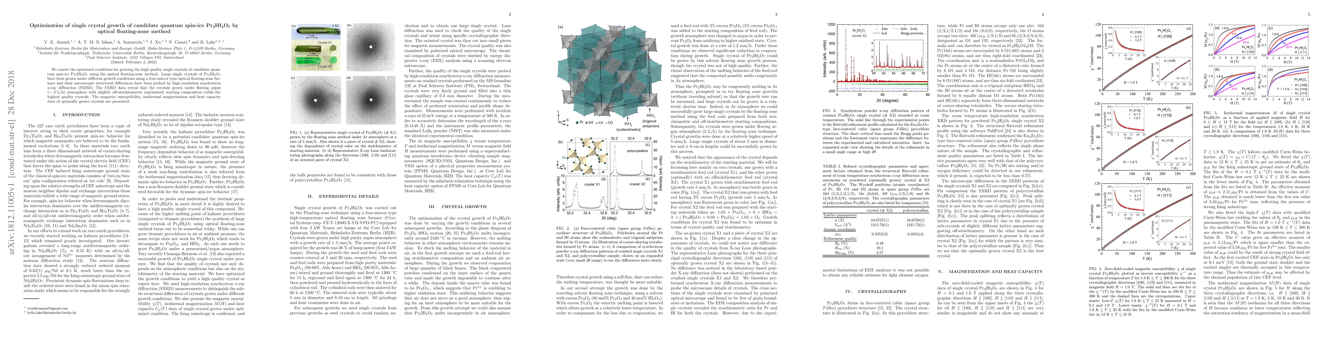 This paper optimizes the growth conditions for high-quality single crystals of Pr2Hf2O7 using the optical floating-zone method, finding that a flowing argon atmosphere with slightly off-stoichiometric composition yields the best results, as confirmed by synchrotron x-ray diffraction and magnetic measurements.
