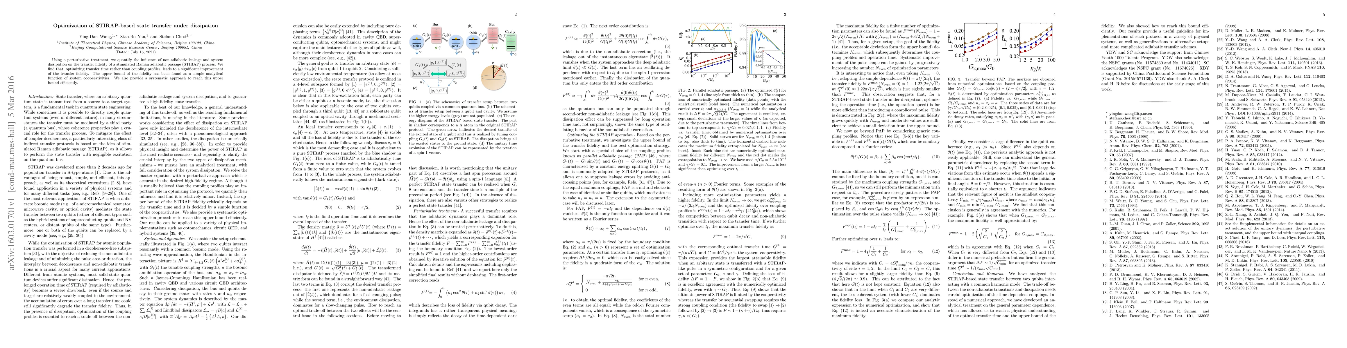 Researchers optimize STIRAP state transfer by focusing on transfer time rather than coupling profiles, leading to improved fidelity and an upper bound of the fidelity expressed as a simple analytical function of system cooperativities.