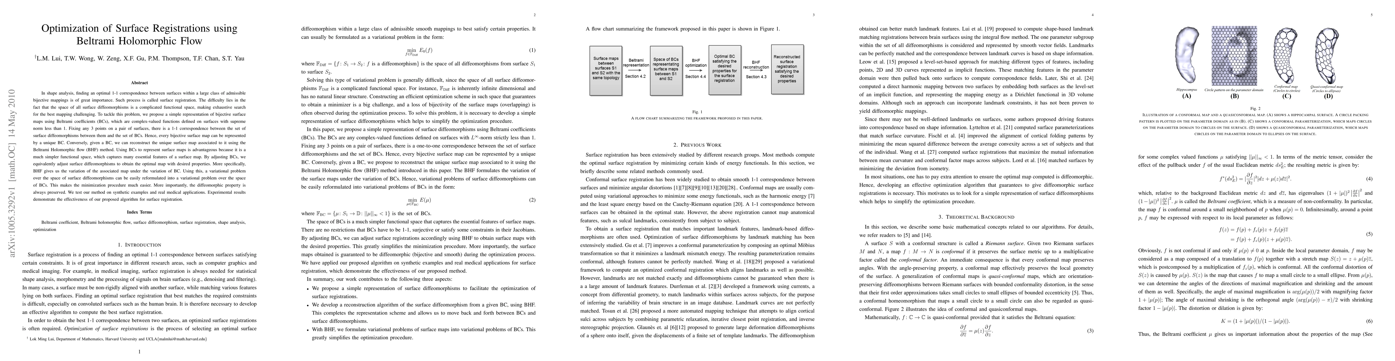 In shape analysis, finding an optimal 1-1 correspondence between surfaces within a large class of admissible bijective mappings is of great importance. Such process is called surface registration. The difficulty lies in the fact that the space of all surface diffeomorphisms is a complicated functional space, making exhaustive search for the best mapping challenging. To tackle this problem, we propose a simple representation of bijective surface maps using Beltrami coefficients (BCs), which are complex-valued functions defined on surfaces with supreme norm less than 1. Fixing any 3 points on a pair of surfaces, there is a 1-1 correspondence between the set of surface diffeomorphisms between them and the set of BCs. Hence, every bijective surface map can be represented by a unique BC. Conversely, given a BC, we can reconstruct the unique surface map associated to it using the Beltrami Holomorphic flow (BHF) method. Using BCs to represent surface maps is advantageous because it is a much simpler functional space, which captures many essential features of a surface map. By adjusting BCs, we equivalently adjust surface diffeomorphisms to obtain the optimal map with desired properties. More specifically, BHF gives us the variation of the associated map under the variation of BC. Using this, a variational problem over the space of surface diffeomorphisms can be easily reformulated into a variational problem over the space of BCs. This makes the minimization procedure much easier. More importantly, the diffeomorphic property is always preserved. We test our method on synthetic examples and real medical applications. Experimental results demonstrate the effectiveness of our proposed algorithm for surface registration.