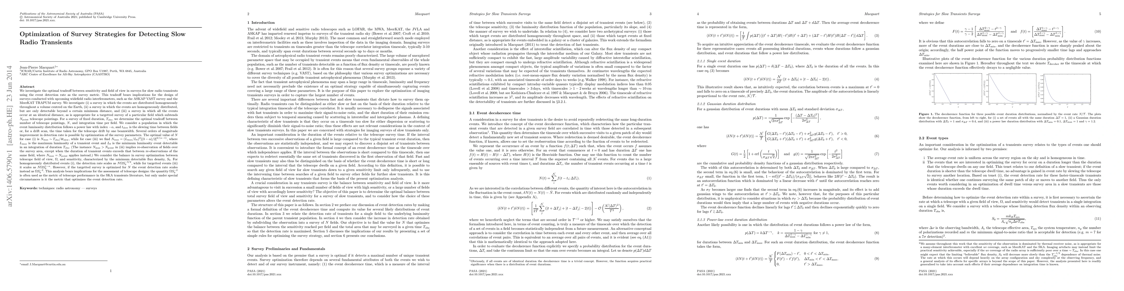 This paper optimizes survey strategies for detecting slow radio transients by analyzing the trade-off between sensitivity and field of view. It finds optimal configurations for different event distributions and determines the best number of telescope pointings and integration times to maximize detection rates.