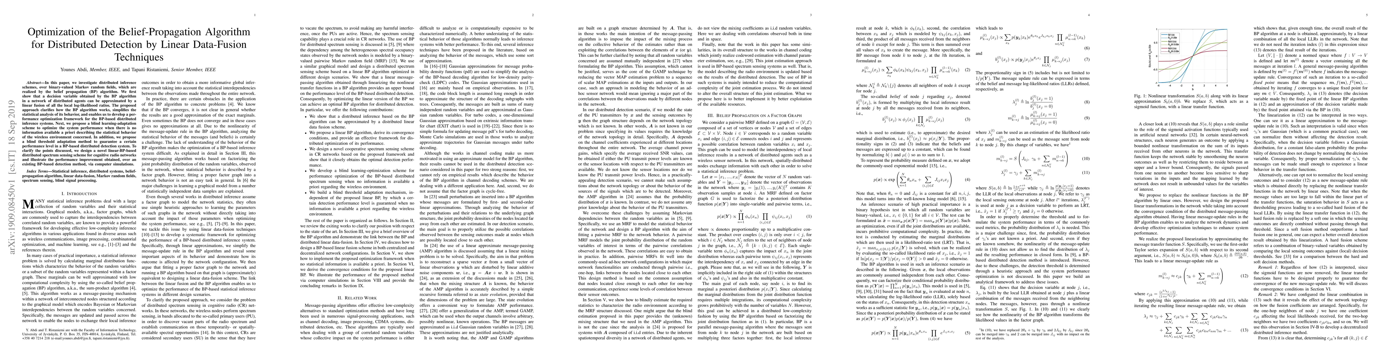 A research paper optimizes the Belief-Propagation algorithm for distributed detection using linear data-fusion techniques, improving system performance in wireless environments with no prior knowledge of the statistical behavior.