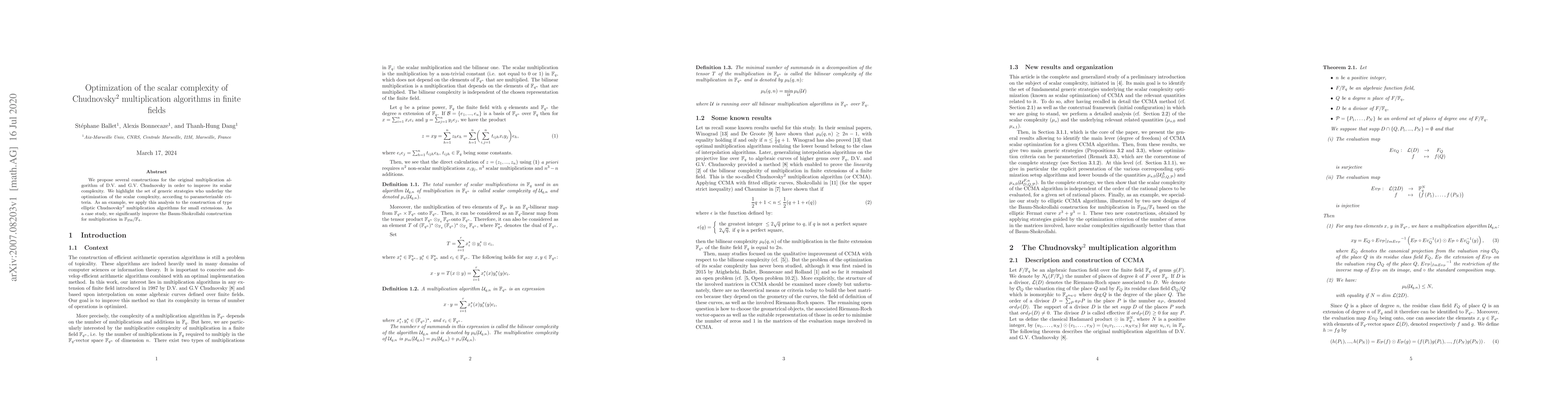 This research is significant as it aims to enhance the efficiency of multiplication algorithms in finite fields, which are crucial in various cryptographic applications. By optimizing scalar complexity, the proposed methods could lead to faster and more efficient implementations of cryptographic protocols.