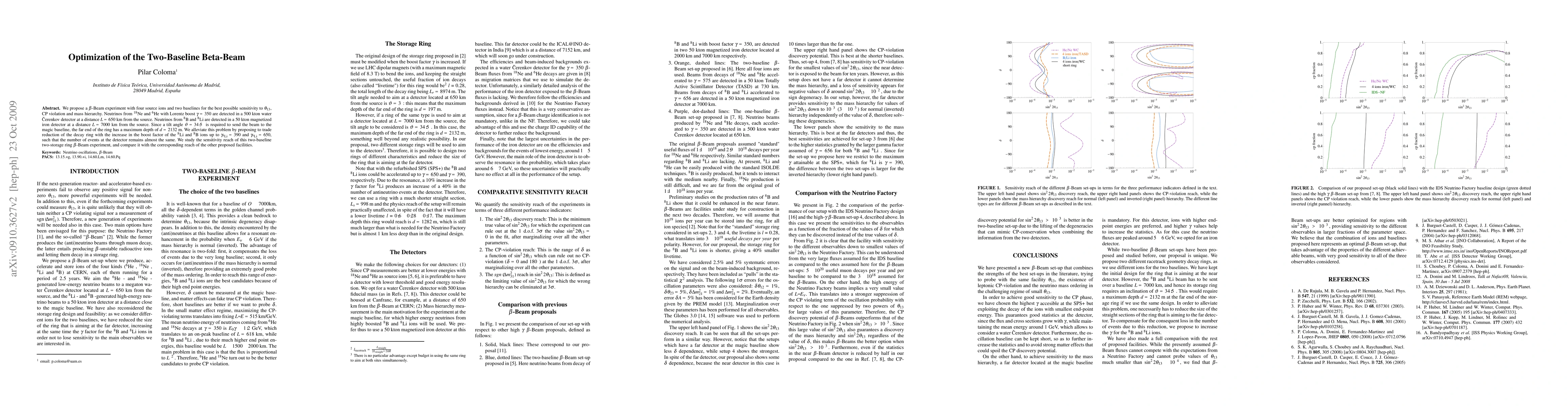 This paper proposes a $\beta$-Beam experiment with four source ions and two baselines to optimize sensitivity to $\theta_{13}$, CP violation, and mass hierarchy. The setup includes two detectors at different distances, with adjustments to the decay ring and boost factors to maintain event counts while achieving optimal experimental conditions.