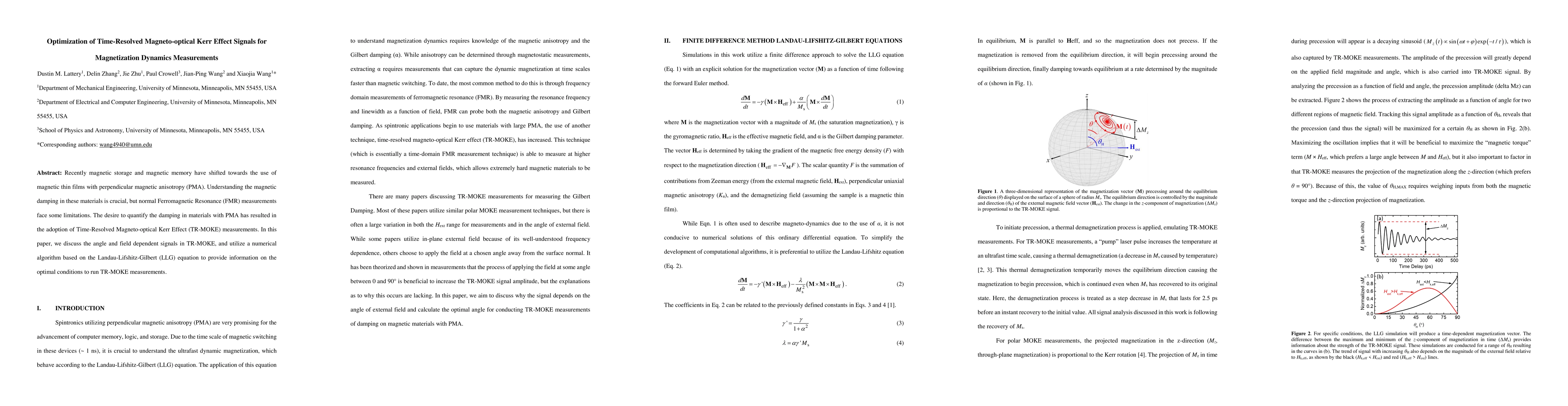 This paper explores optimization techniques for Time-Resolved Magneto-optical Kerr Effect (TR-MOKE) measurements to better understand magnetic damping in perpendicular magnetic anisotropy (PMA) thin films. It employs a numerical algorithm based on the Landau-Lifshitz-Gilbert (LLG) equation to determine the best conditions for TR-MOKE signal acquisition.