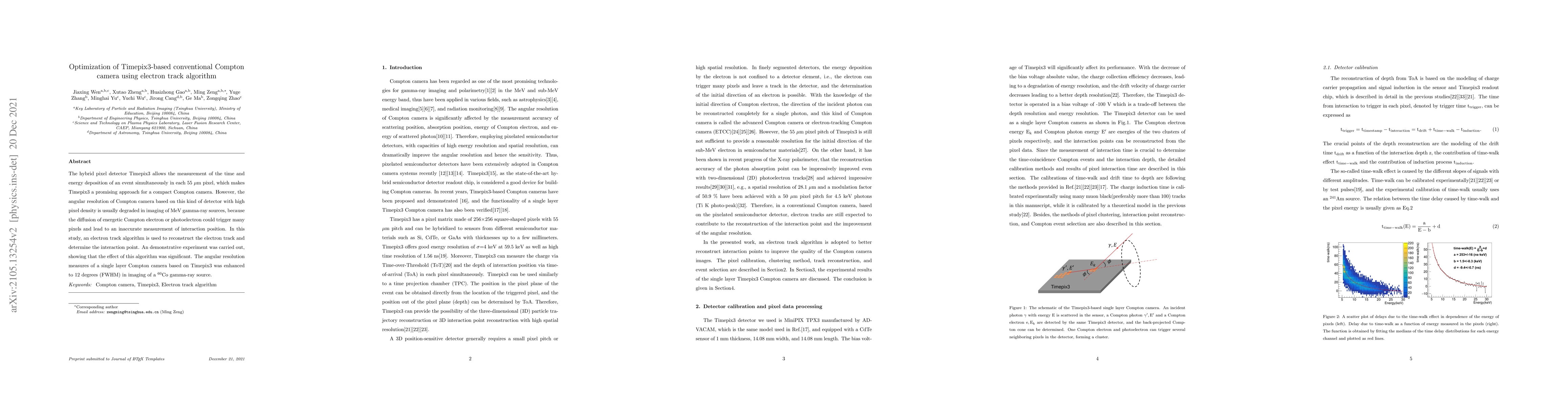 This study optimizes a Timepix3-based Compton camera using an electron track algorithm to enhance angular resolution, achieving 12 degrees (FWHM) in imaging a Co-60 gamma source, addressing the issue of degraded resolution due to pixel diffusion.