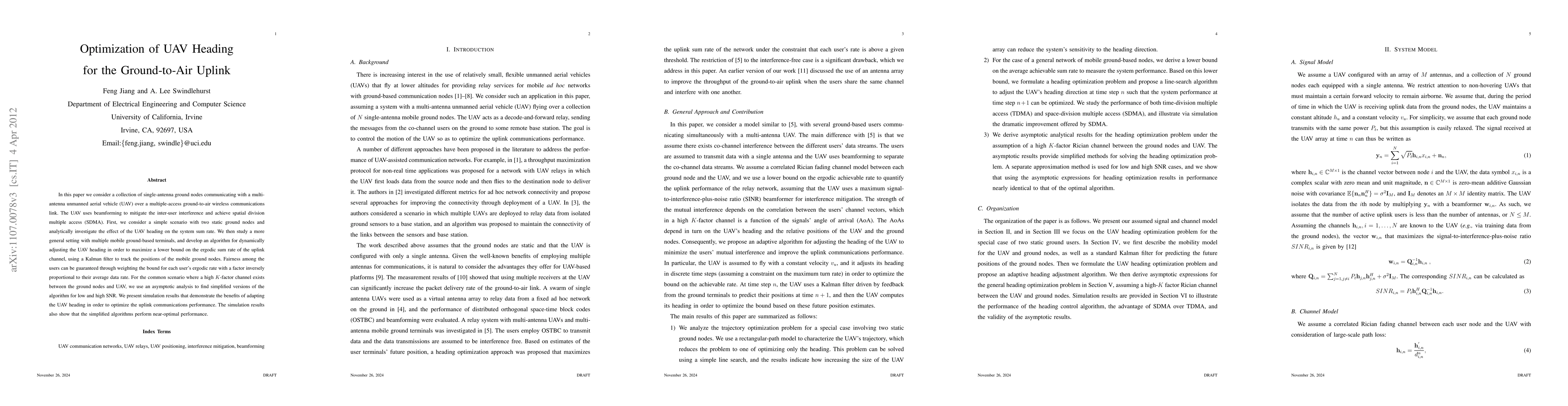 In this paper we consider a collection of single-antenna ground nodes communicating with a multi-antenna unmanned aerial vehicle (UAV) over a multiple-access ground-to-air wireless communications link. The UAV uses beamforming to mitigate the inter-user interference and achieve spatial division multiple access (SDMA). First, we consider a simple scenario with two static ground nodes and analytically investigate the effect of the UAV heading on the system sum rate. We then study a more general setting with multiple mobile ground-based terminals, and develop an algorithm for dynamically adjusting the UAV heading in order to maximize a lower bound on the ergodic sum rate of the uplink channel, using a Kalman filter to track the positions of the mobile ground nodes. Fairness among the users can be guaranteed through weighting the bound for each user's ergodic rate with a factor inversely proportional to their average data rate. For the common scenario where a high $K$-factor channel exists between the ground nodes and UAV, we use an asymptotic analysis to find simplified versions of the algorithm for low and high SNR. We present simulation results that demonstrate the benefits of adapting the UAV heading in order to optimize the uplink communications performance. The simulation results also show that the simplified algorithms perform near-optimal performance.