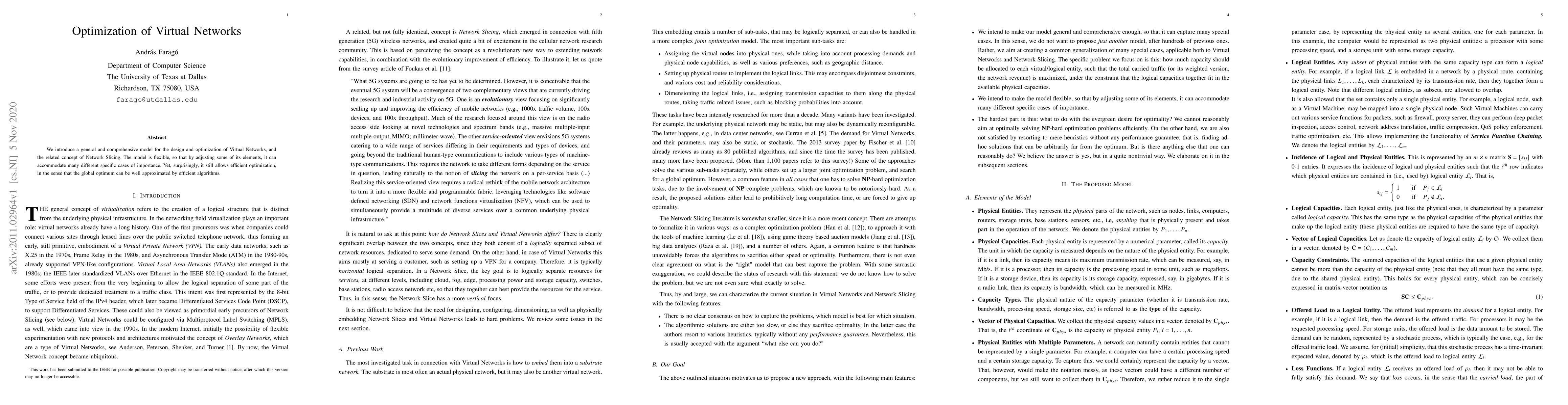 We introduce a general and comprehensive model for the design and optimization of Virtual Networks, and for the related concept of Network Slicing. The model is flexible, so that by adjusting some of its elements, it can accommodate many different specific cases of importance. Yet, surprisingly, it still allows efficient optimization, in the sense that the global optimum can be well approximated by efficient algorithms.
