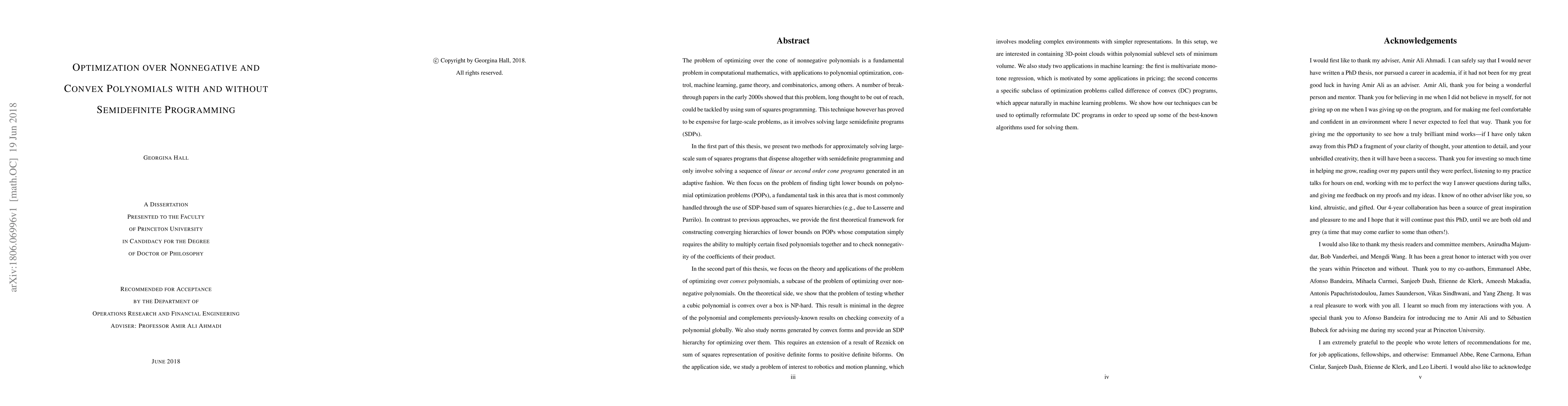 This paper presents novel methods for optimizing over nonnegative polynomials, focusing on bypassing semidefinite programming through adaptive linear or second-order cone programs. It also introduces a theoretical framework for constructing converging hierarchies of lower bounds on polynomial optimization problems without relying on SDPs. Additionally, it explores the optimization over convex polynomials, offering new insights and applications.
