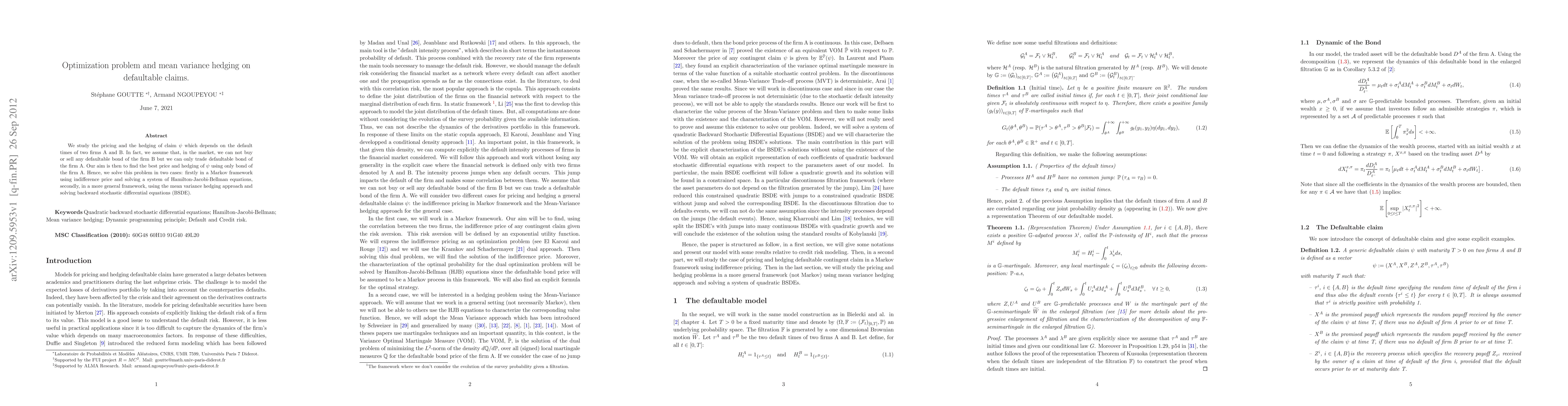 This paper explores the pricing and hedging of a claim dependent on the default times of two firms, focusing on using only defaultable bonds of firm A for hedging. It employs two methods: a Markov framework with indifference pricing and Hamilton-Jacobi-Bellman equations, and a mean variance approach using backward stochastic differential equations.
