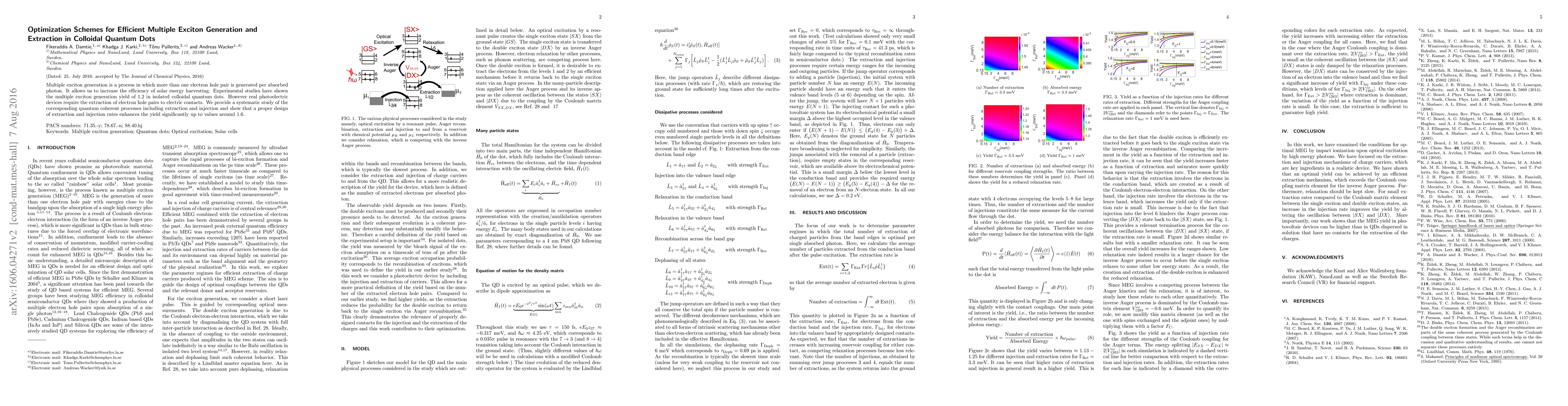 This paper investigates optimization strategies for improving multiple exciton generation and extraction in colloidal quantum dots, demonstrating that tailored extraction and injection rates can boost the yield to around 1.6, significantly enhancing solar energy harvesting efficiency.