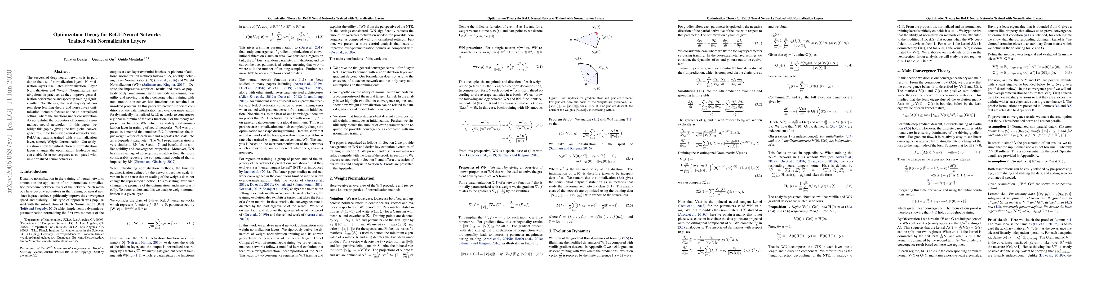 This paper presents the first global convergence result for two-layer ReLU neural networks trained with Weight Normalization, bridging the gap between theory and practice. It demonstrates how normalization layers alter the optimization landscape, potentially leading to faster convergence compared to un-normalized networks.