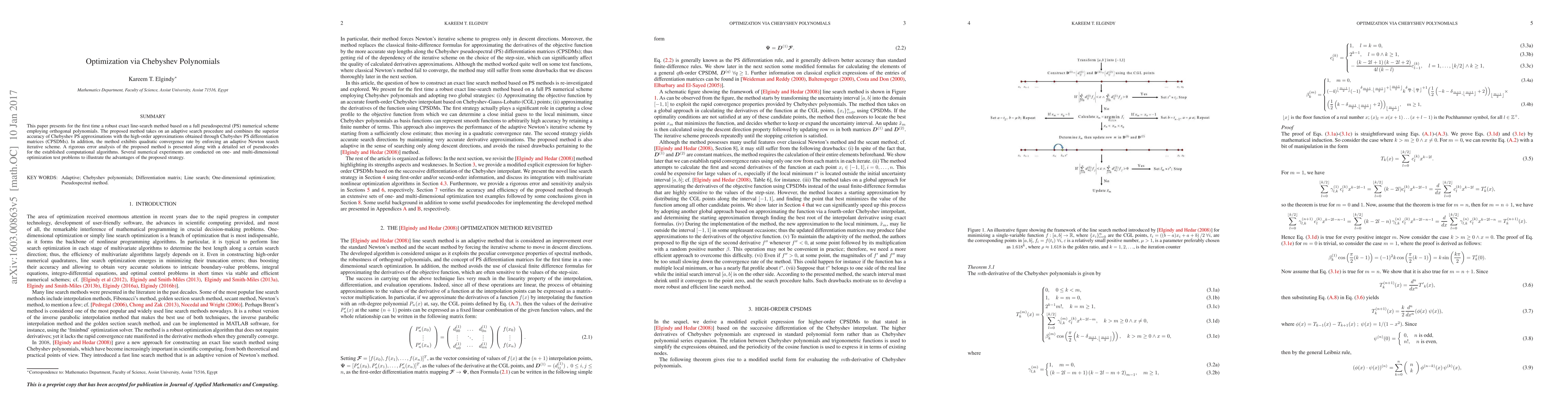 This paper introduces a robust exact line-search optimization method using Chebyshev polynomials and pseudospectral techniques, achieving quadratic convergence through adaptive Newton iterations. The method combines high-order approximations from Chebyshev pseudospectral differentiation matrices and is validated via numerical experiments on optimization problems.