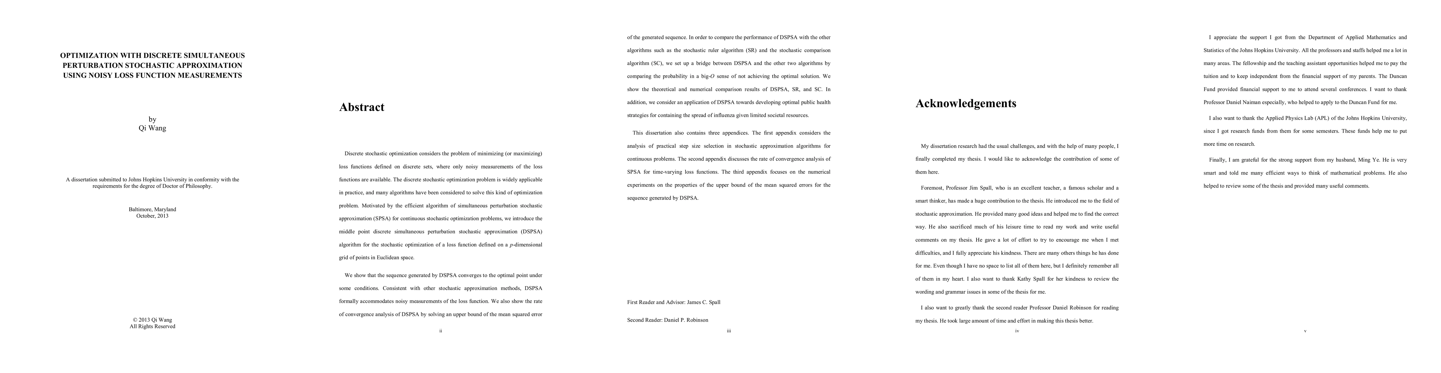 This paper introduces the middle point discrete simultaneous perturbation stochastic approximation (DSPSA) algorithm for optimizing loss functions on discrete sets with noisy measurements. The DSPSA algorithm is shown to converge to the optimal point under certain conditions and is compared with other stochastic optimization algorithms, demonstrating its effectiveness in both theoretical and practical applications, such as developing optimal public health strategies.