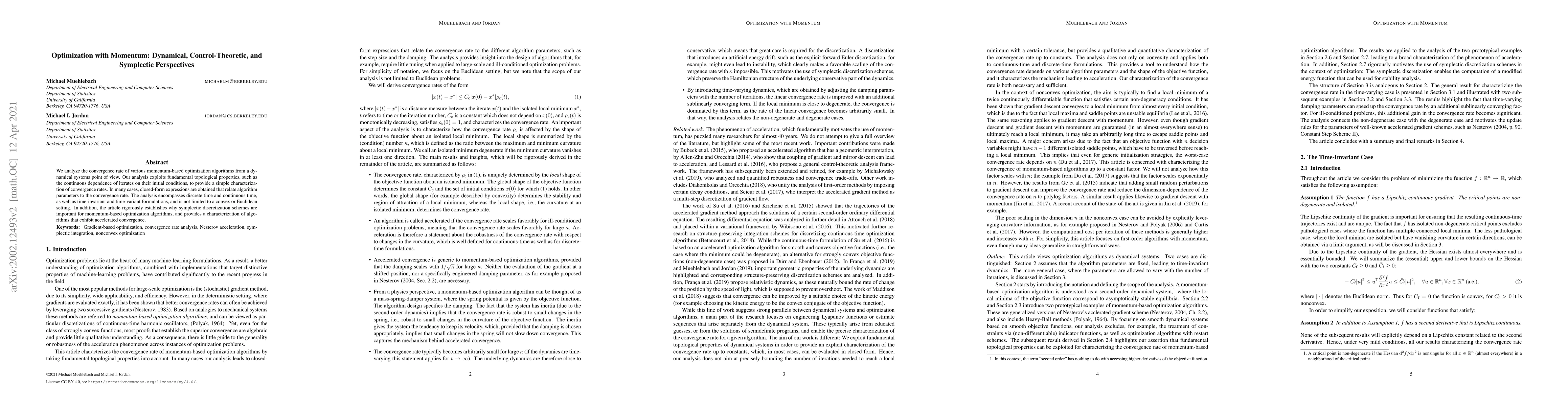 This paper analyzes the convergence rates of momentum-based optimization algorithms through dynamical systems and control theory, offering closed-form expressions relating parameters to convergence. It also highlights the importance of symplectic discretization for achieving accelerated convergence.