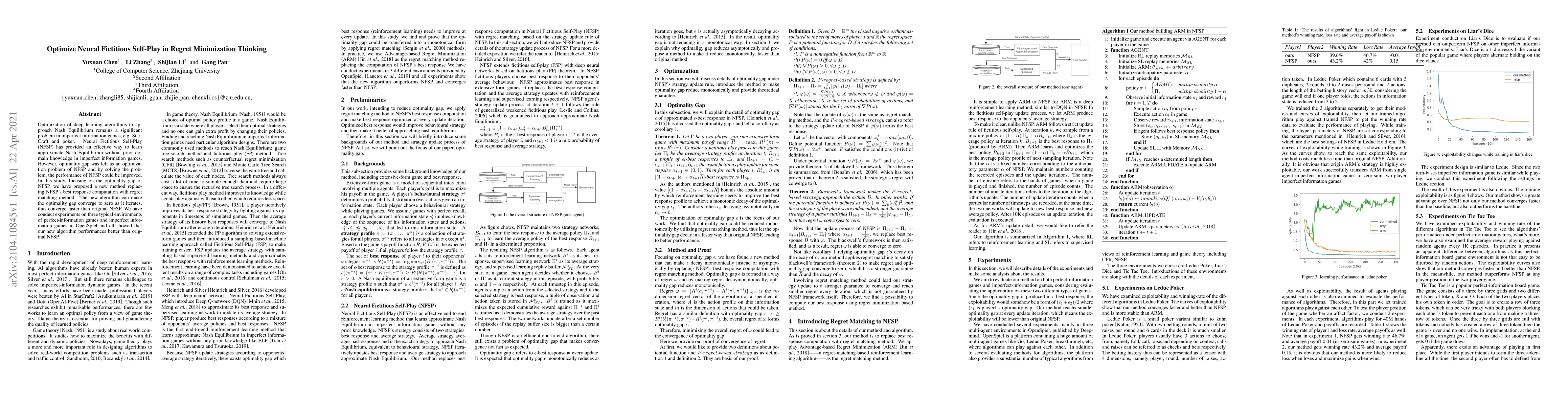 This paper proposes a new method to optimize Neural Fictitious Self-Play (NFSP) by replacing its best response computation with a regret matching approach, aiming to minimize the optimality gap. Experimental results show that the new algorithm converges faster and performs better than the original NFSP across various game environments.