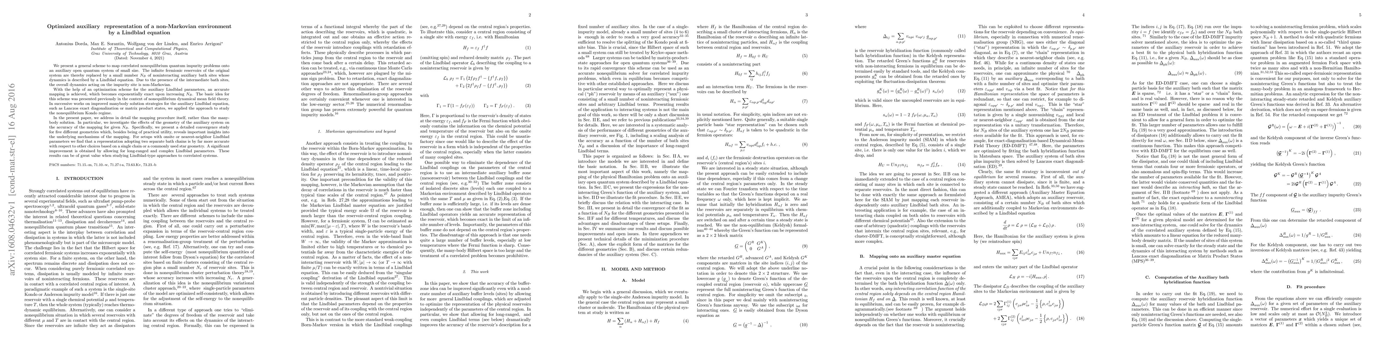 We present a general scheme to map correlated nonequilibrium quantum impurity problems onto an auxiliary open quantum system of small size. The infinite fermionic reservoirs of the original system are thereby replaced by a small number $N_B$ of noninteracting auxiliary bath sites whose dynamics is described by a Lindblad equation. Due to the presence of the intermediate bath sites, the overall dynamics acting on the impurity site is non-Markovian. With the help of an optimization scheme for the auxiliary Lindblad parameters, an accurate mapping is achieved, which becomes exponentially exact upon increasing $N_B$. The basic idea for this scheme was presented previously in the context of nonequilibrium dynamical mean field theory. In successive works on improved manybody solution strategies for the auxiliary Lindblad equation, such as Lanczos exact diagonalization or matrix product states, we applied the approach to study the nonequilibrium Kondo regime. In the present paper, we address in detail the mapping procedure itself, rather than the many-body solution. In particular, we investigate the effects of the geometry of the auxiliary system on the accuracy of the mapping for given $N_B$. Specifically, we present a detailed convergence study for five different geometries which, besides being of practical utility, reveals important insights into the underlying mechanisms of the mapping. For setups with onsite or nearest-neighbor Lindblad parameters we find that a representation adopting two separate bath chains is by far more accurate with respect to other choices based on a single chain or a commonly used star geometry. A significant improvement is obtained by allowing for long-ranged and complex Lindblad parameters. These results can be of great value when studying Lindblad-type approaches to correlated systems.
