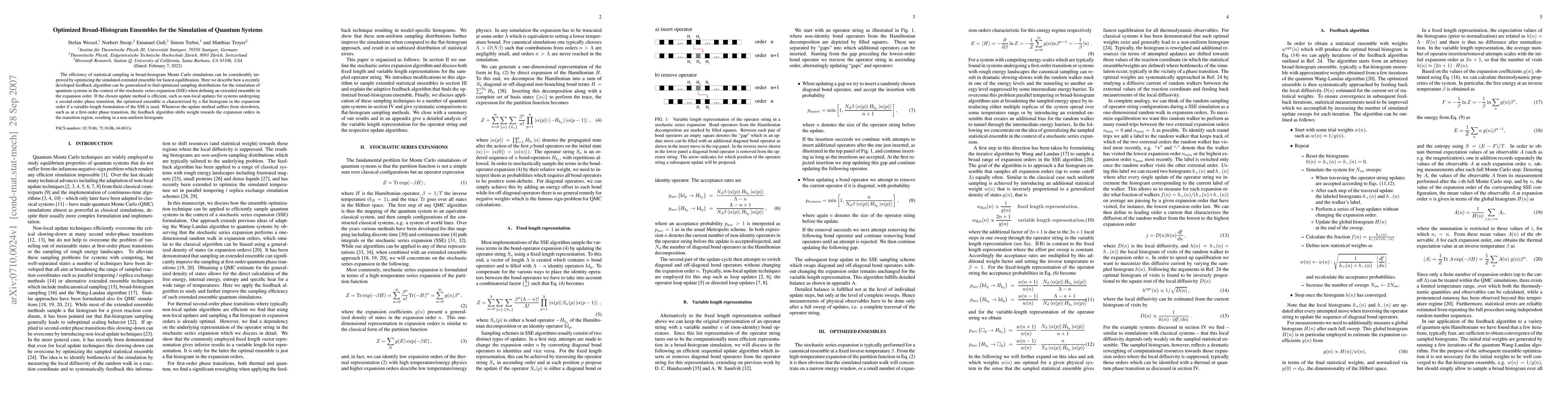 The efficiency of statistical sampling in broad-histogram Monte Carlo simulations can be considerably improved by optimizing the simulated extended ensemble for fastest equilibration. Here we describe how a recently developed feedback algorithm can be generalized to find optimized sampling distributions for the simulation of quantum systems in the context of the stochastic series expansion (SSE) when defining an extended ensemble in the expansion order. If the chosen update method is efficient, such as non-local updates for systems undergoing a second-order phase transition, the optimized ensemble is characterized by a flat histogram in the expansion order if a variable-length formulation of the SSE is used. Whenever the update method suffers from slowdown, such as at a first-order phase transition, the feedback algorithm shifts weight towards the expansion orders in the transition region, resulting in a non-uniform histogram.