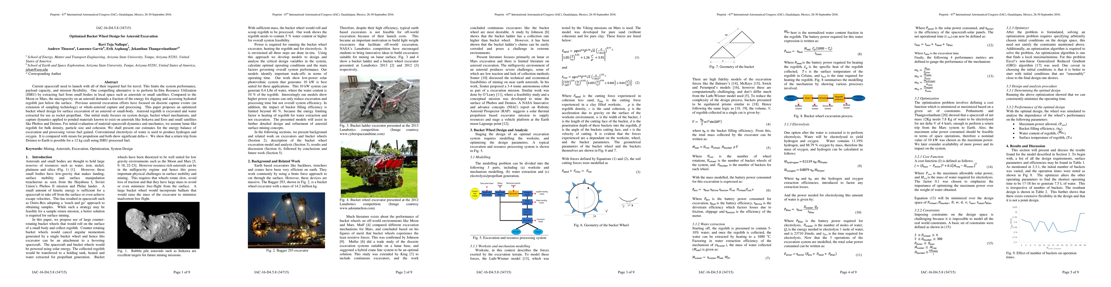 Current spacecraft need to launch with all of their required fuel for travel. This limits the system performance, payload capacity, and mission flexibility. One compelling alternative is to perform In-Situ Resource Utilization (ISRU) by extracting fuel from small bodies in local space such as asteroids or small satellites. Compared to the Moon or Mars, the microgravity on an asteroid demands a fraction of the energy for digging and accessing hydrated regolith just below the surface. Previous asteroid excavation efforts have focused on discrete capture events (an extension of sampling technology) or whole-asteroid capture and processing. This paper proposes an optimized bucket wheel design for surface excavation of an asteroid or small-body. Asteroid regolith is excavated and water extracted for use as rocket propellant. Our initial study focuses on system design, bucket wheel mechanisms, and capture dynamics applied to ponded materials known to exist on asteroids like Itokawa and Eros and small satellites like Phobos and Deimos. For initial evaluation of material-spacecraft dynamics and mechanics, we assume lunar-like regolith for bulk density, particle size and cohesion. We shall present our estimates for the energy balance of excavation and processing versus fuel gained. Conventional electrolysis of water is used to produce hydrogen and oxygen. It is compared with steam for propulsion and both show significant delta-v. We show that a return trip from Deimos to Earth is possible for a 12 kg craft using ISRU processed fuel.