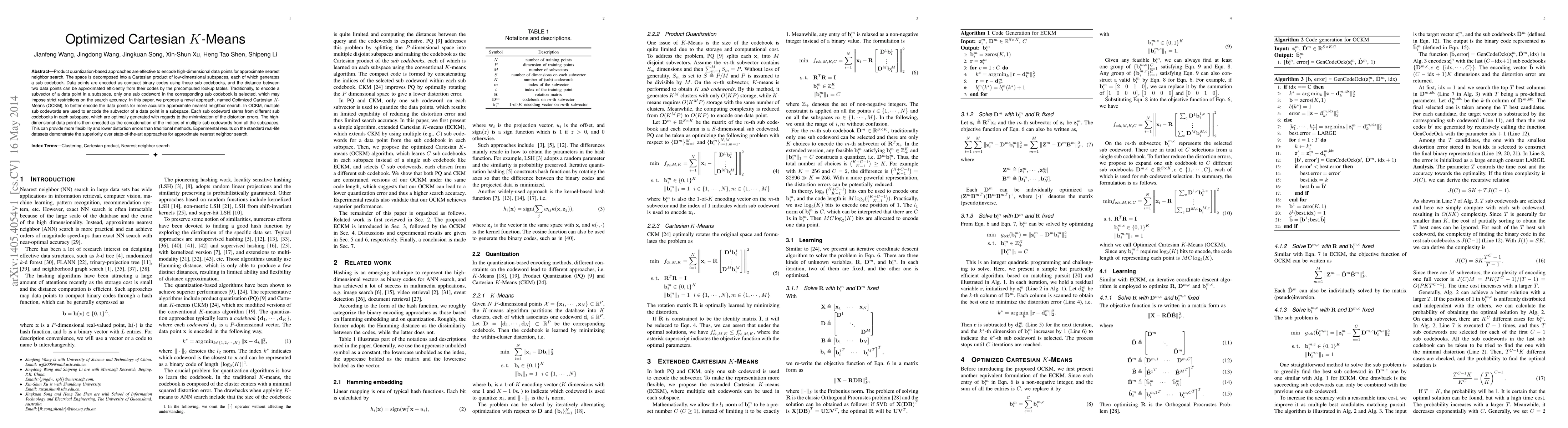 A new method called Optimized Cartesian $K$-Means is proposed to improve approximate nearest neighbor search accuracy by using multiple codewords per subspace instead of one.