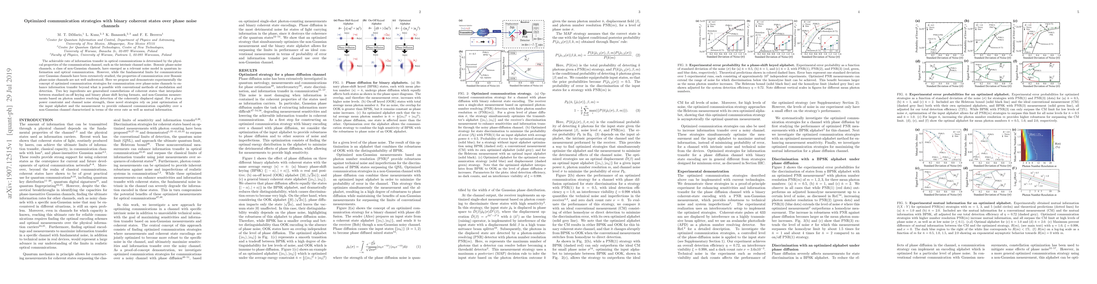 This paper proposes optimized communication strategies using binary coherent states over bosonic phase-noise channels, enhancing information transfer through generalized constellations and photon number resolving detection. These strategies achieve better performance in terms of error rate and mutual information compared to conventional methods.
