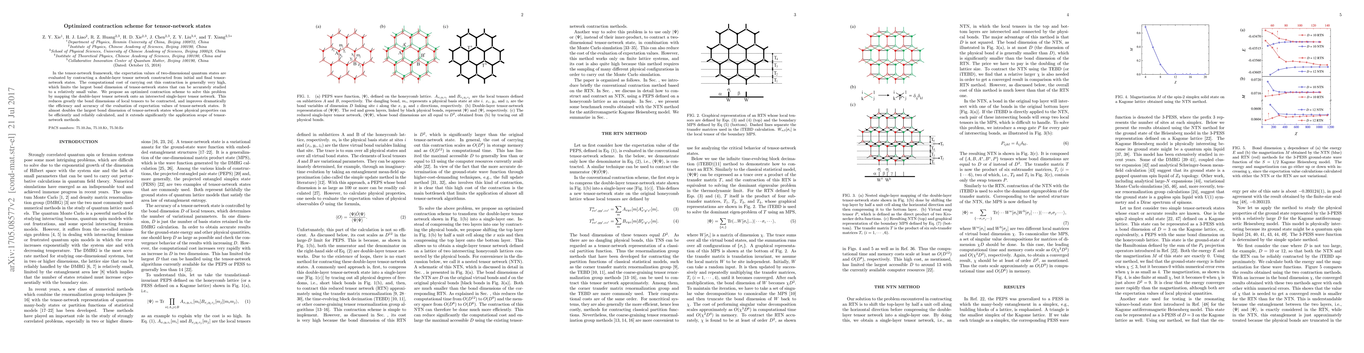 This paper proposes an optimized contraction scheme to efficiently evaluate expectation values in tensor-network states by reducing the computational cost through a mapping of double-layer to single-layer tensor networks, significantly improving the largest bond dimension that can be accurately studied.