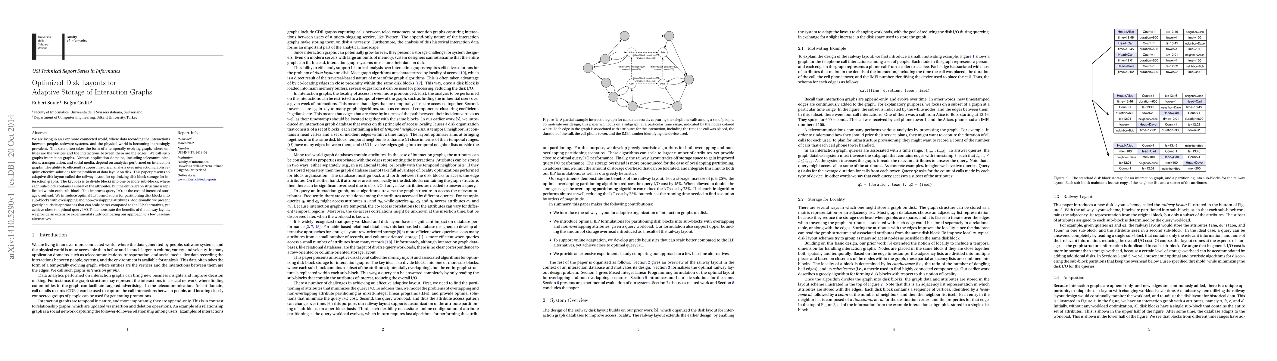 We are living in an ever more connected world, where data recording the interactions between people, software systems, and the physical world is becoming increasingly prevalent. This data often takes the form of a temporally evolving graph, where entities are the vertices and the interactions between them are the edges. We call such graphs interaction graphs. Various application domains, including telecommunications, transportation, and social media, depend on analytics performed on interaction graphs. The ability to efficiently support historical analysis over interaction graphs require effective solutions for the problem of data layout on disk. This paper presents an adaptive disk layout called the railway layout for optimizing disk block storage for interaction graphs. The key idea is to divide blocks into one or more sub-blocks, where each sub-block contains a subset of the attributes, but the entire graph structure is replicated within each sub-block. This improves query I/O, at the cost of increased storage overhead. We introduce optimal ILP formulations for partitioning disk blocks into sub-blocks with overlapping and non-overlapping attributes. Additionally, we present greedy heuristic approaches that can scale better compared to the ILP alternatives, yet achieve close to optimal query I/O. To demonstrate the benefits of the railway layout, we provide an extensive experimental study comparing our approach to a few baseline alternatives.