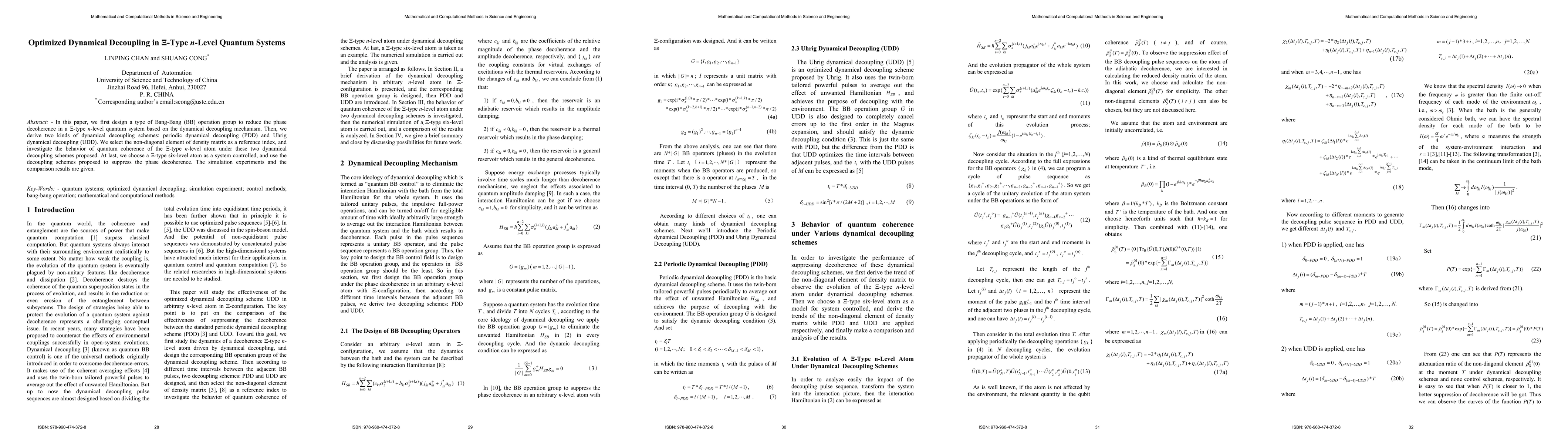 This paper proposes a Bang-Bang operation group to minimize phase decoherence in {\Xi}-type n-level quantum systems via dynamical decoupling. It introduces two decoupling schemes—periodic and Uhrig—and evaluates their effectiveness in preserving quantum coherence using a six-level {\Xi}-type atom, with simulation results demonstrating their efficacy.