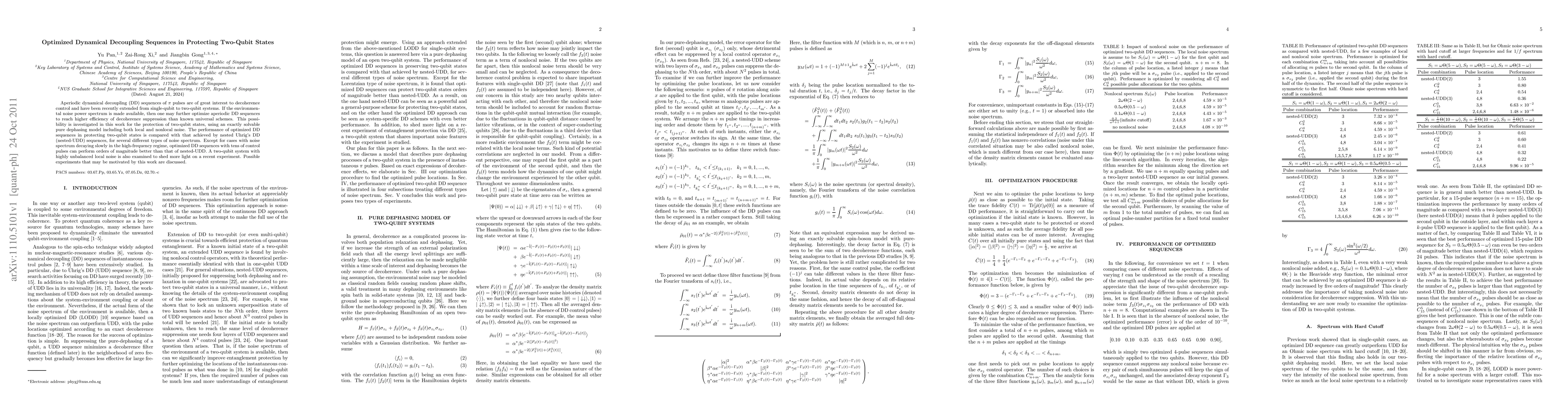 This paper investigates optimized aperiodic dynamical decoupling sequences for enhancing decoherence suppression in two-qubit systems, comparing their performance against nested Uhrig's DD sequences under various noise conditions. Optimized sequences show significantly better results, especially when the noise spectrum decays rapidly at high frequencies.