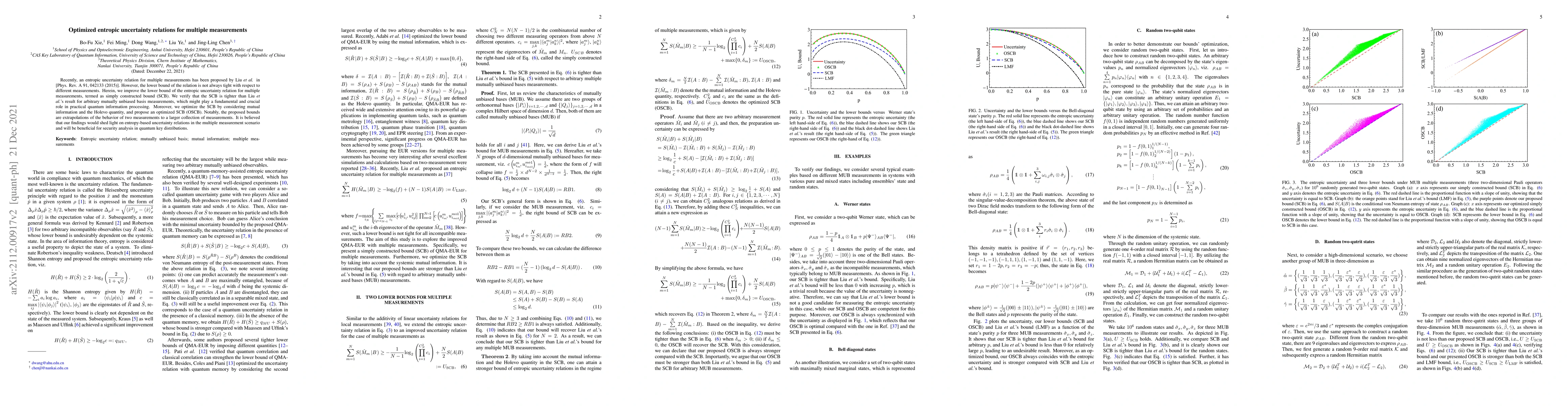 This paper optimizes entropic uncertainty relations for multiple measurements, proposing a tighter bound termed the simply constructed bound (SCB) compared to Liu et al.'s result. The optimized SCB (OSCB) further refines this bound, enhancing its applicability in quantum information processing and security analysis in quantum key distributions.