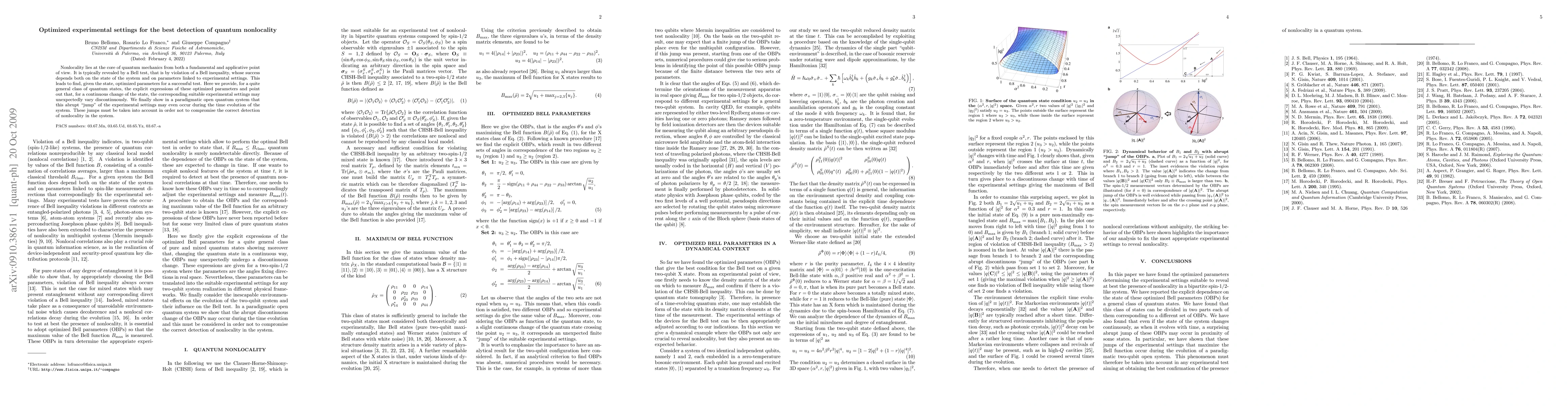 Nonlocality lies at the core of quantum mechanics from both a fundamental and applicative point of view. It is typically revealed by a Bell test, that is by violation of a Bell inequality, whose success depends both on the state of the system and on parameters linked to experimental settings. This leads to find, given the state, optimized parameters for a successful test. Here we provide, for a quite general class of quantum states, the explicit expressions of these optimized parameters and point out that, for a continuous change of the state, the corresponding suitable experimental settings may unexpectedly vary discontinuously. We finally show in a paradigmatic open quantum system that this abrupt "jump" of the experimental settings may even occur during the time evolution of the system. These jumps must be taken into account in order not to compromise the correct detection of nonlocality in the system.